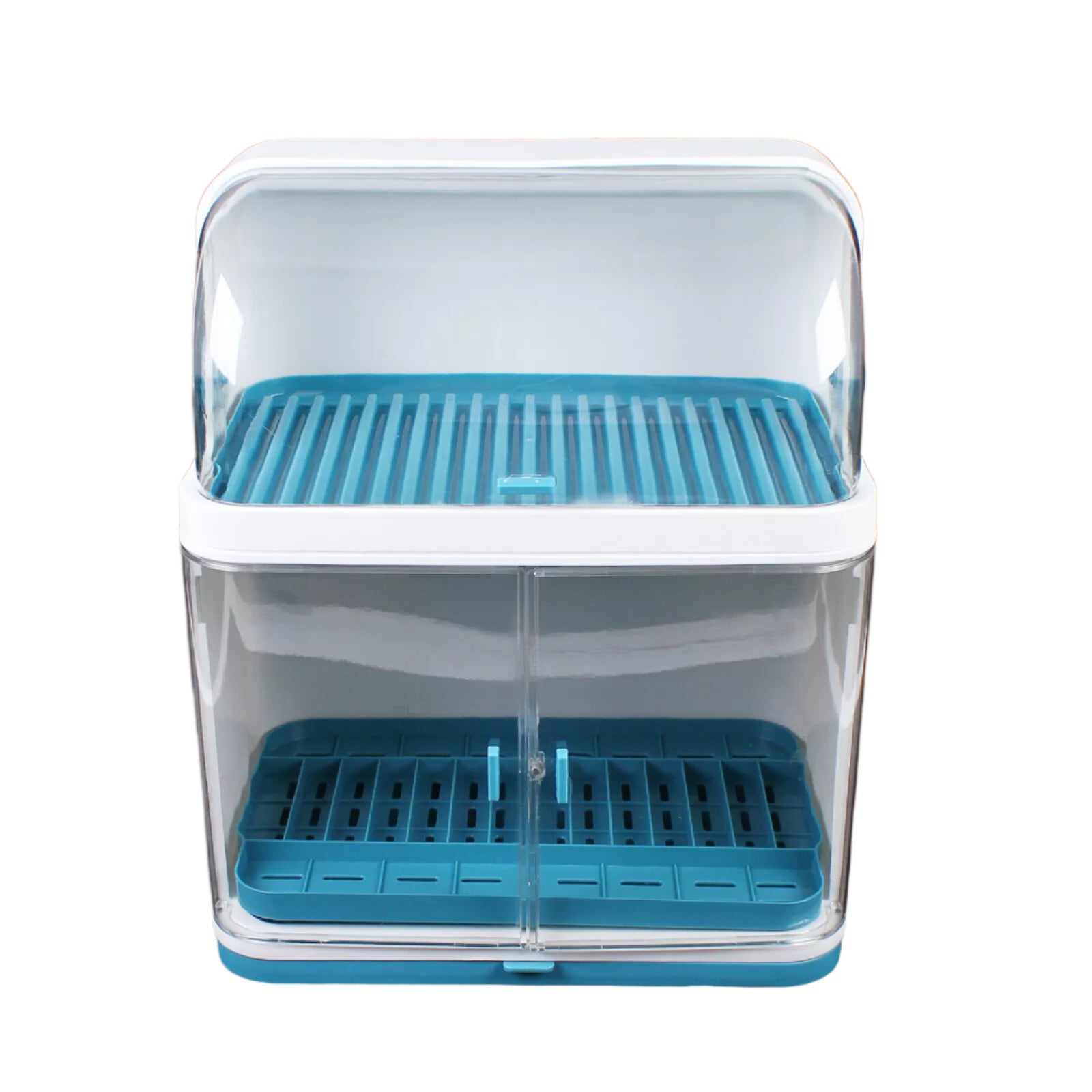 Crafted from high-quality PP and ABS plastic, this durable rack resists aging and wear. The transparent dust cover protects your dishes while allowing visibility. The detachable drip tray at the bottom separates excess moisture, ensuring quick drying and cleanliness.