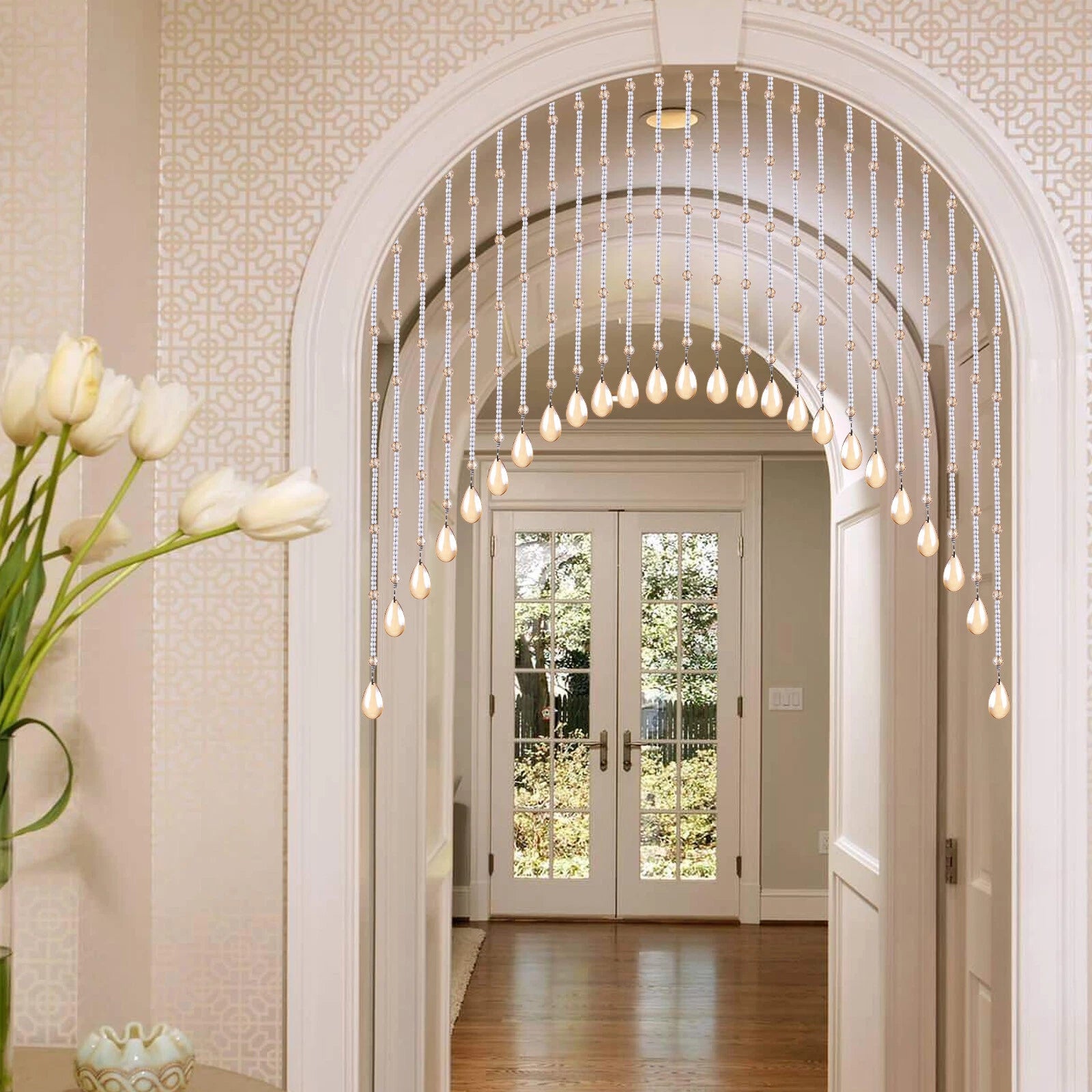 Ideal as a doorway curtain, arched window valance, or room divider, this piece instantly enhances the visual appeal of bedrooms, living rooms, boutique stores, B&Bs, and more. Adds a sparkling focal point to any space. -