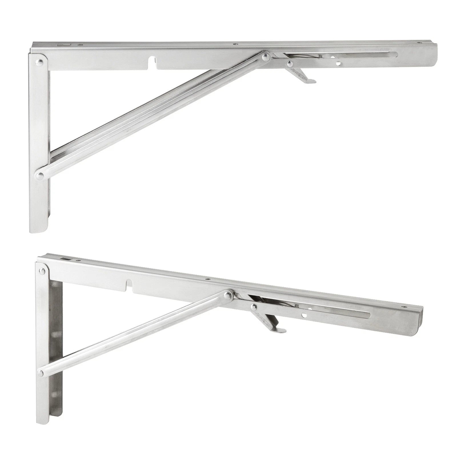 Each bracket locks at a 90-degree angle for reliable support but can be easily folded down by pressing and releasing the arm. This convenient design maximizes space when not in use.