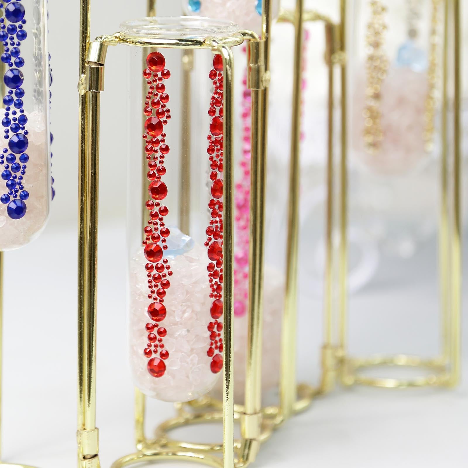 Add a dazzling touch to your DIY projects with these stick-on rhinestone diamond gems! Each strip features eye-catching red rhinestones on a clear adhesive strip, making them perfect for accenting favor boxes, vases, candle holders, bouquets, cards, scrapbook pages, and more. Whether for weddings, parties, or personal crafts, these easy-to-use stickers will bring a sparkling finish to your creative designs.