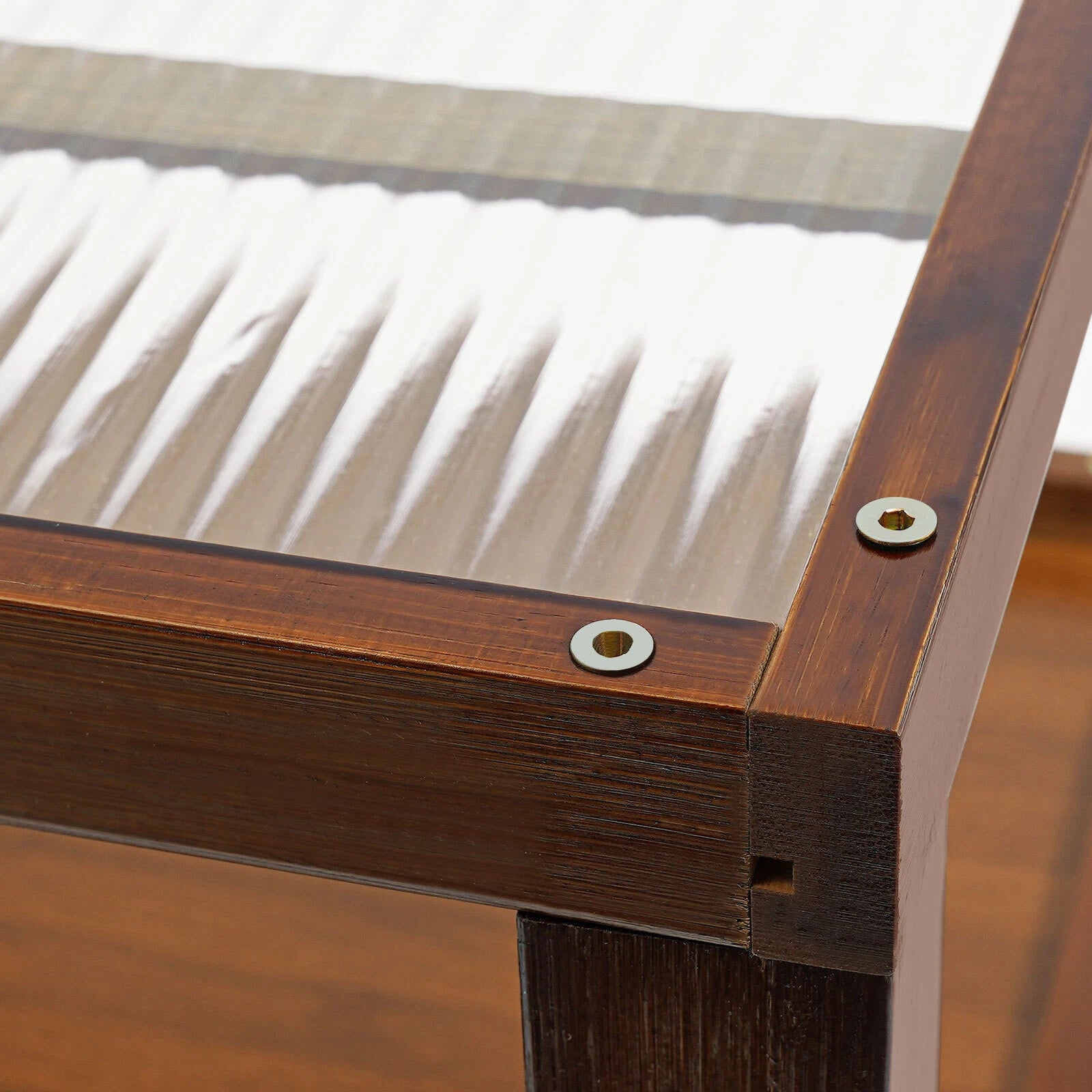 Made from bamboo, medium-density fiberboard, and acrylic with a varnish coating, this end table is resistant to wear, impact, and deformation. The structure is stable and built to last. -
