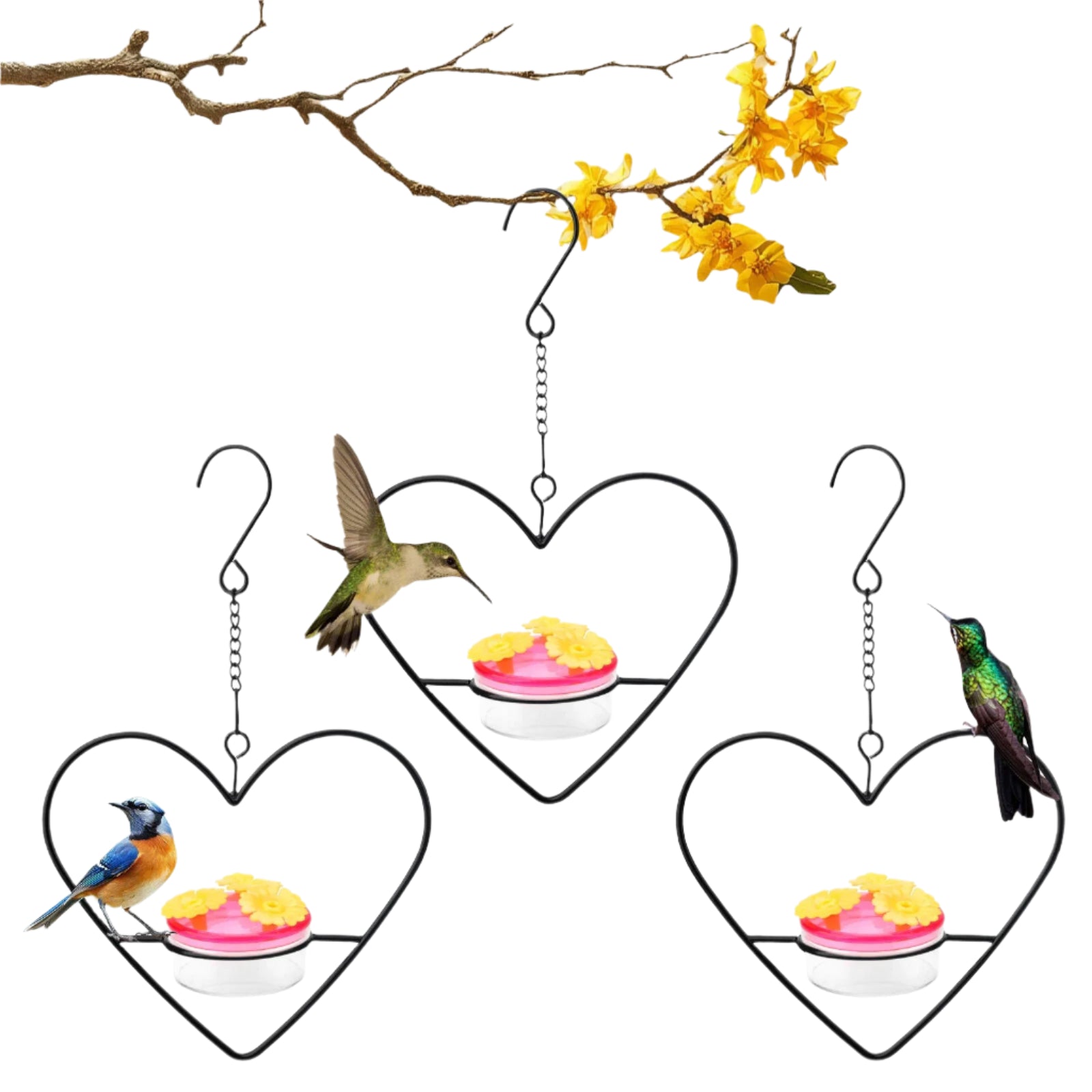 Each feeder features a unique heart-shaped design that not only attracts hummingbirds but also adds a decorative touch to your outdoor space.