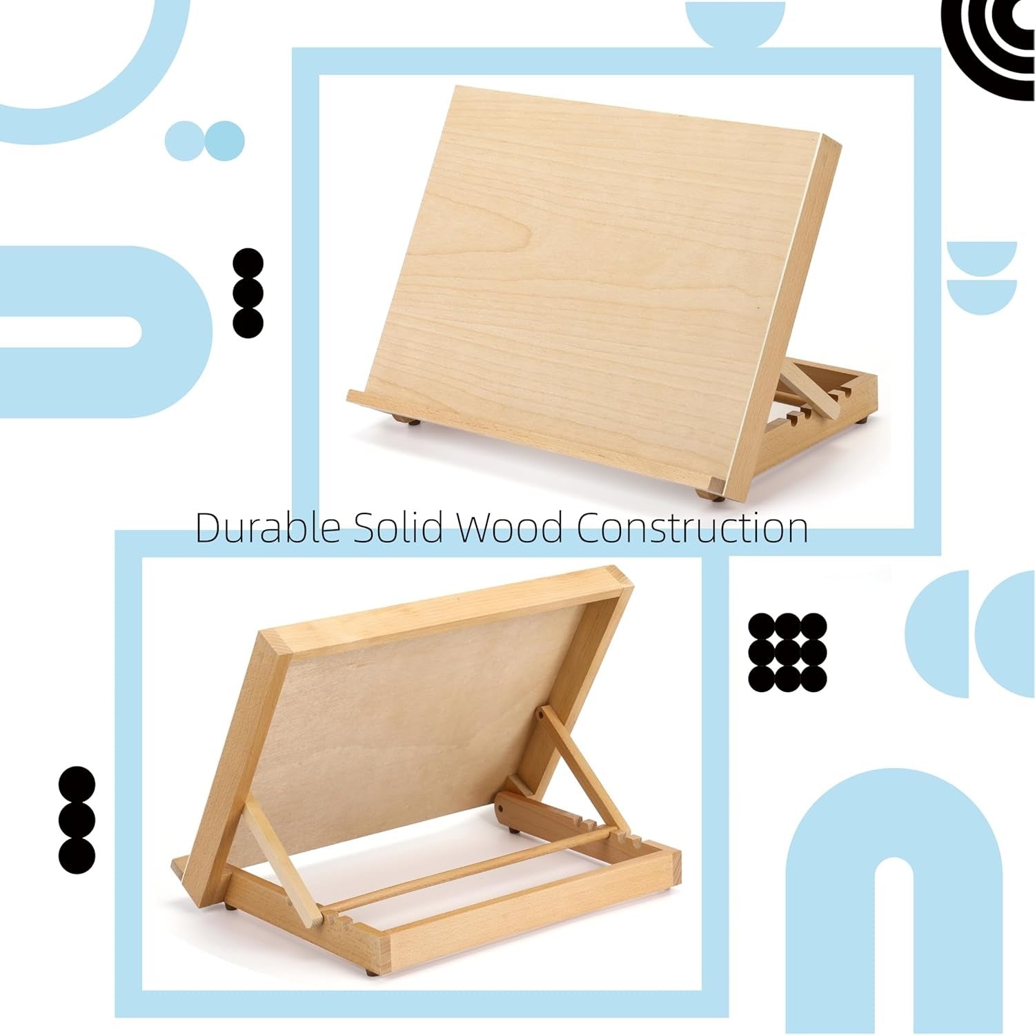 Create comfortably anywhere with this adjustable wood tabletop easel. Featuring a smooth 16.5" x 12.5" art board and 5 adjustable angle positions, this portable drafting table is perfect for painting, drawing, sketching, and studio work. Lightweight yet sturdy, it’s ideal for artists, students, and hobbyists working at desks or tabletops.