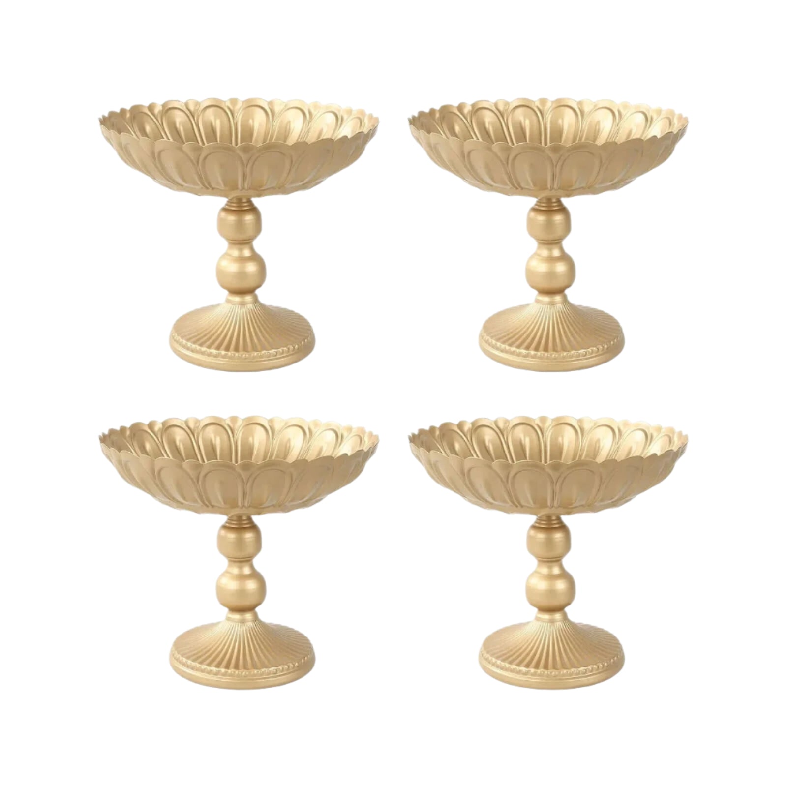 4 Gold Metal Grecian Urn Compote Pedestal Vases