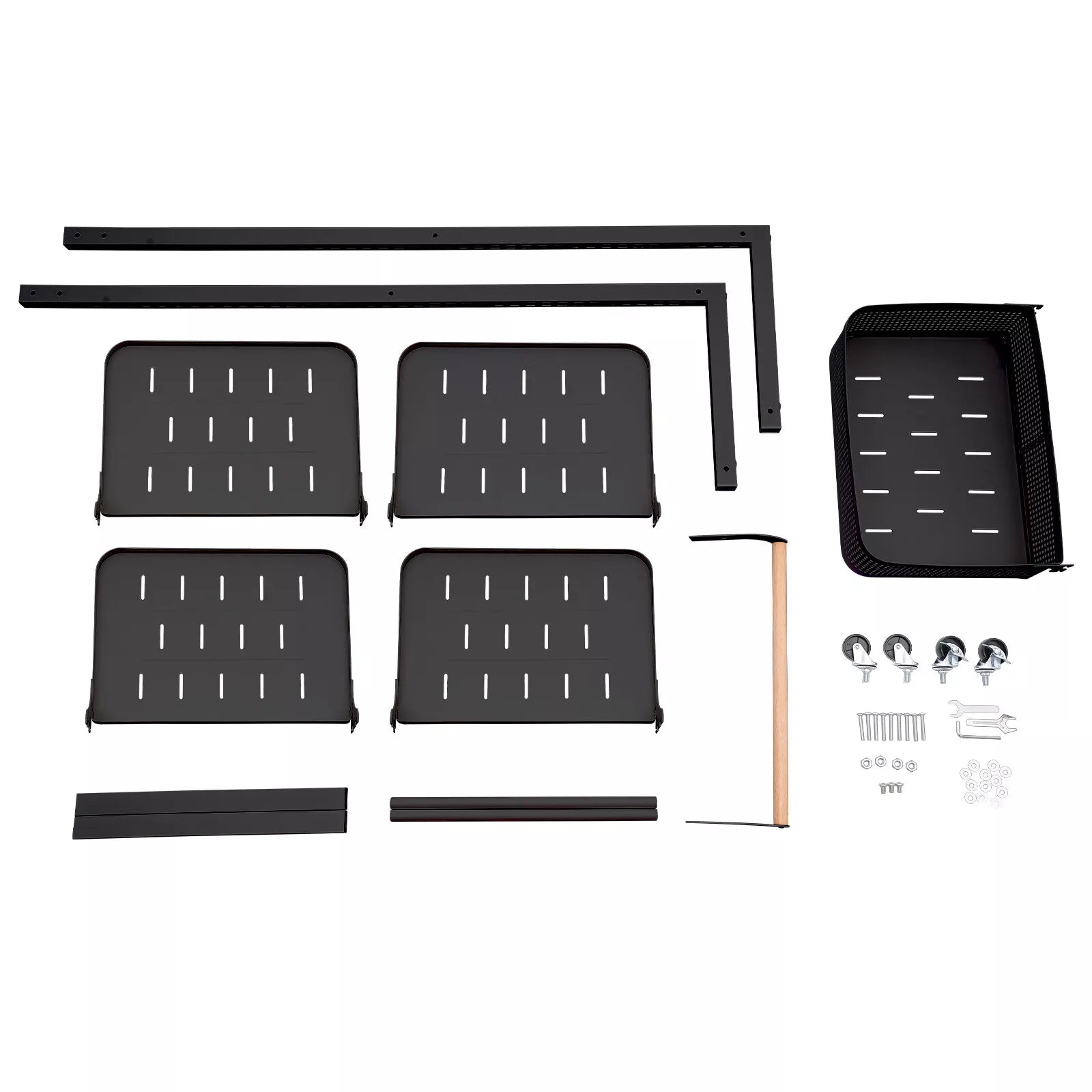 Maximize your kitchen storage with this 5-Tier Pot & Pan Organizer Rack, designed to help you keep cookware, fruits, vegetables, and more neatly arranged and easily accessible. Made from durable carbon steel with a sleek black finish, this rack features adjustable tiers and smooth-rolling wheels for flexible, space-saving organization.