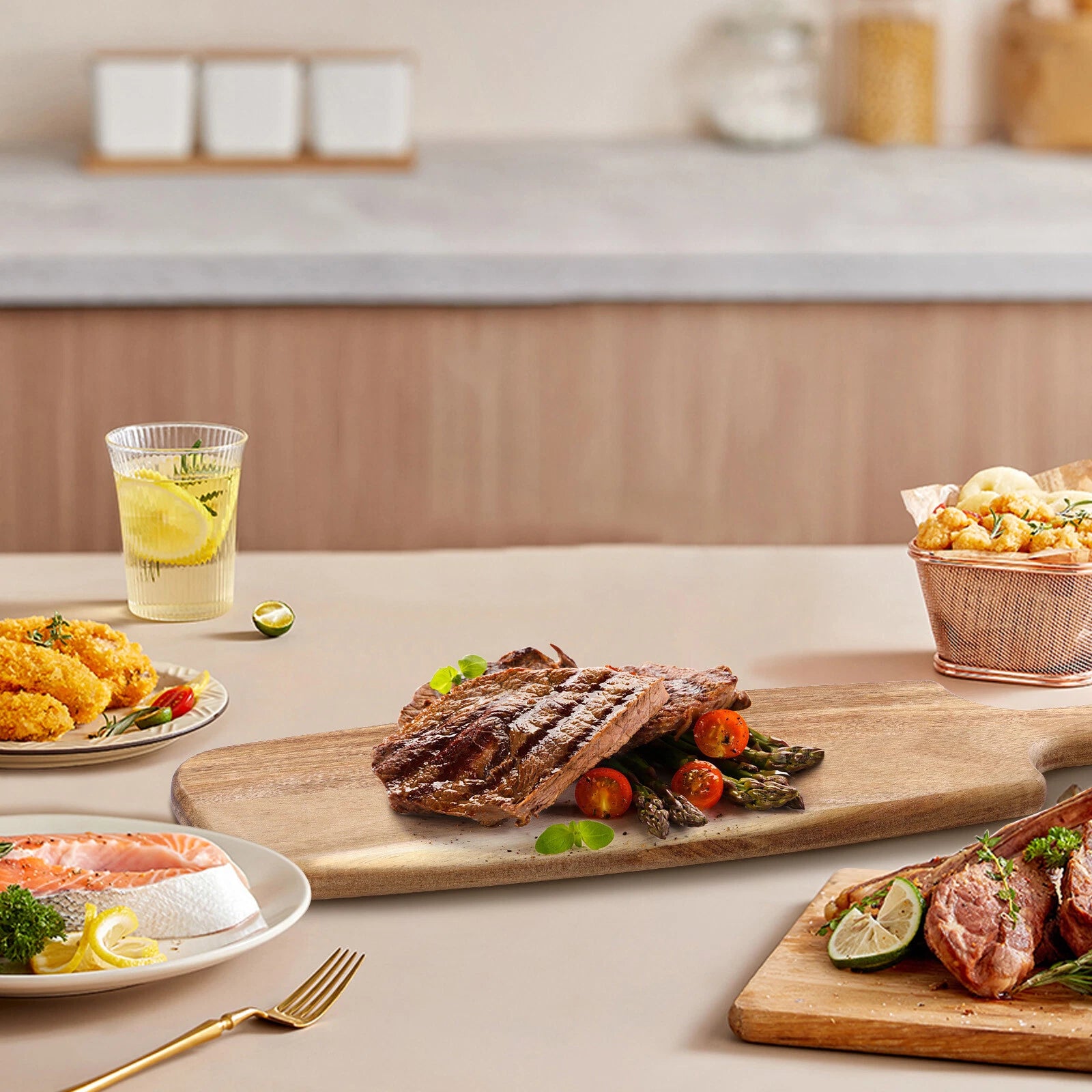 Expertly crafted from premium acacia wood, these cutting boards are durable, stylish, and built to outlast plastic alternatives. Ideal for everyday kitchen use. -