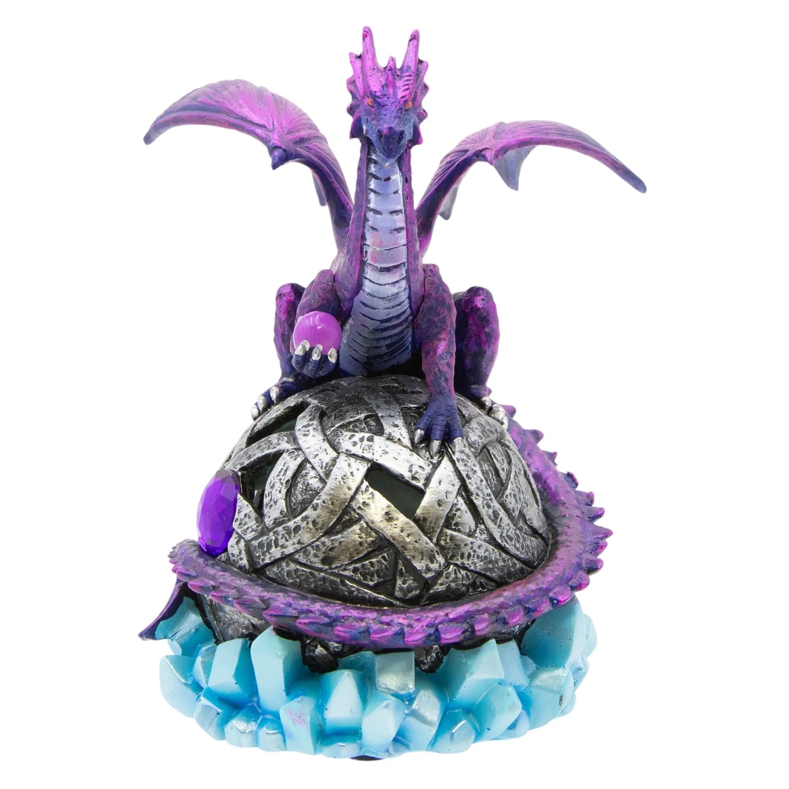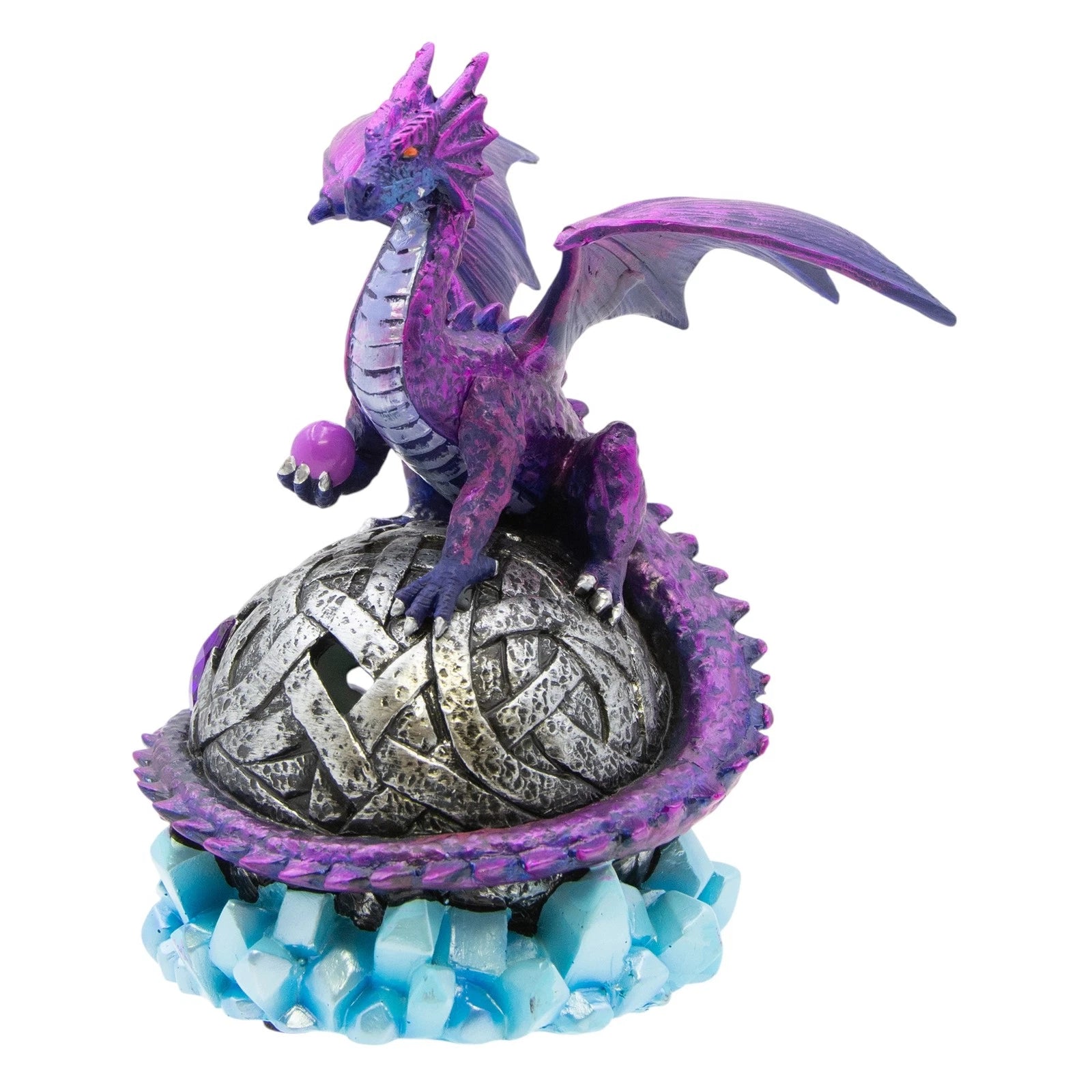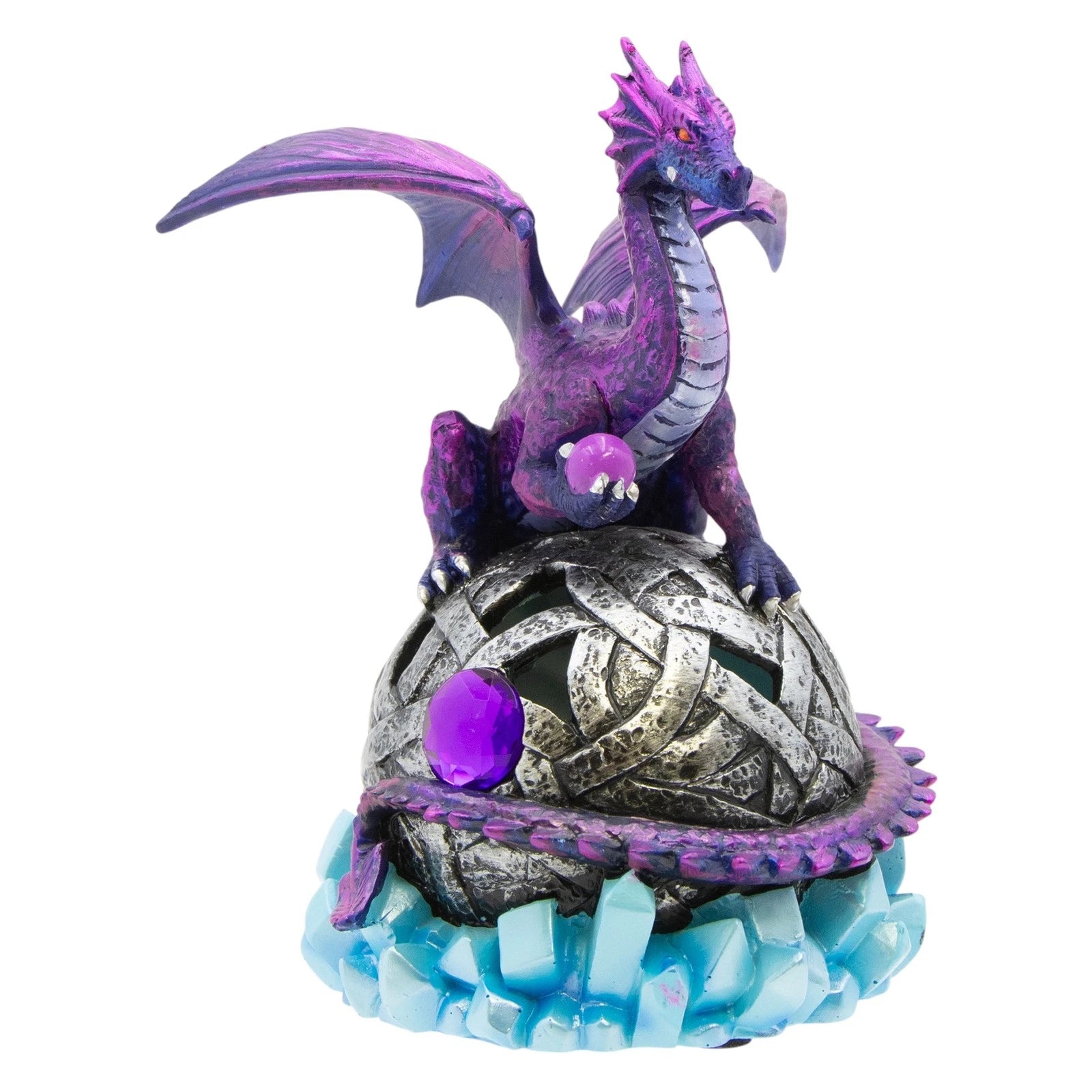 Intricate Design: Detailed purple and silver dragon perched on an orb, crafted from durable resin.