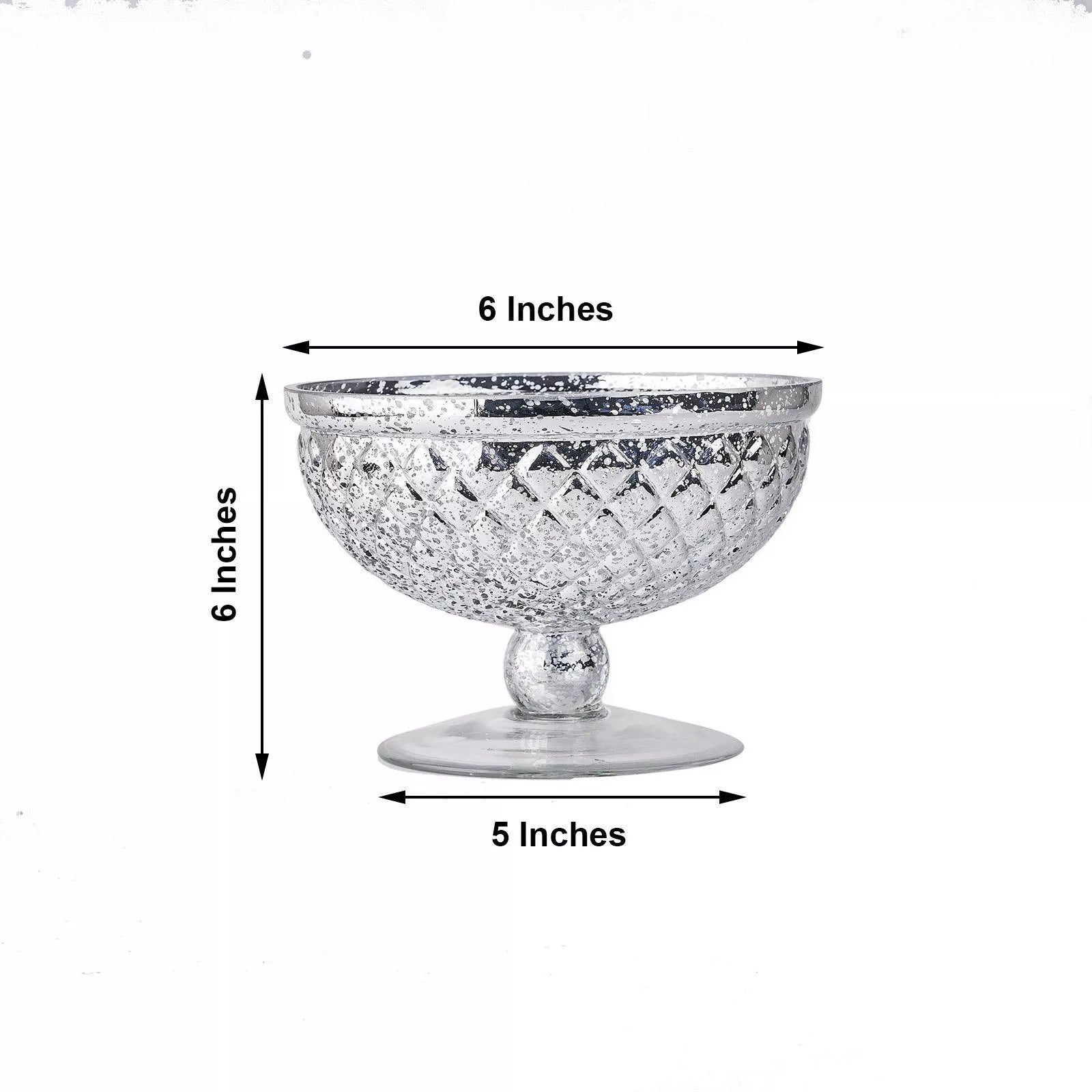 Enhance your decor with the timeless elegance of this mercury glass compote vase bowl. Its sophisticated design is perfect for showcasing fresh or artificial flowers, candles, or decorative fillers. Whether used as a centerpiece for weddings and events or as a stunning mantelpiece accent, this versatile vase creates an inviting and luxurious atmosphere. Ideal for use on kitchen, dining, or coffee tables, and makes a thoughtful gift for any occasion.