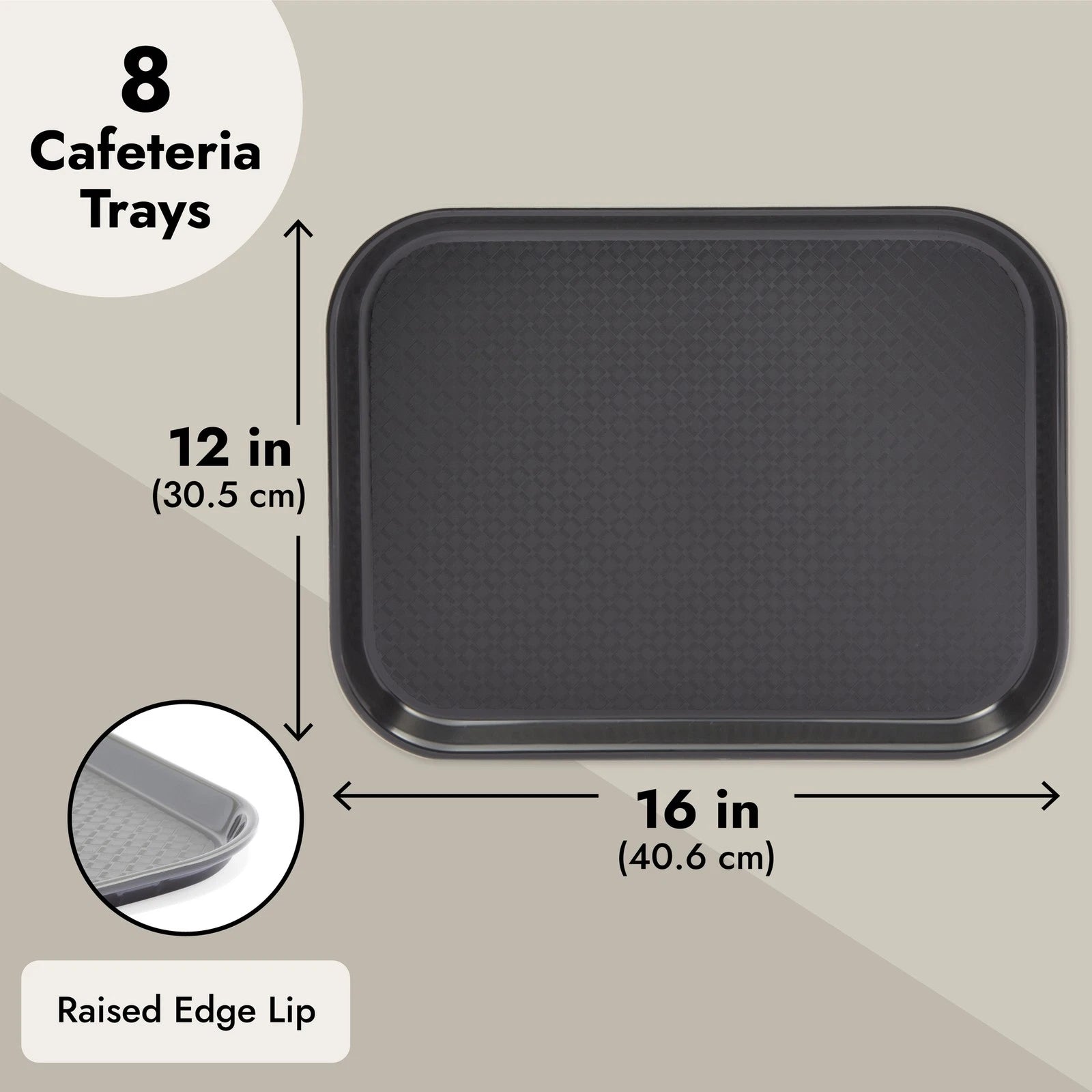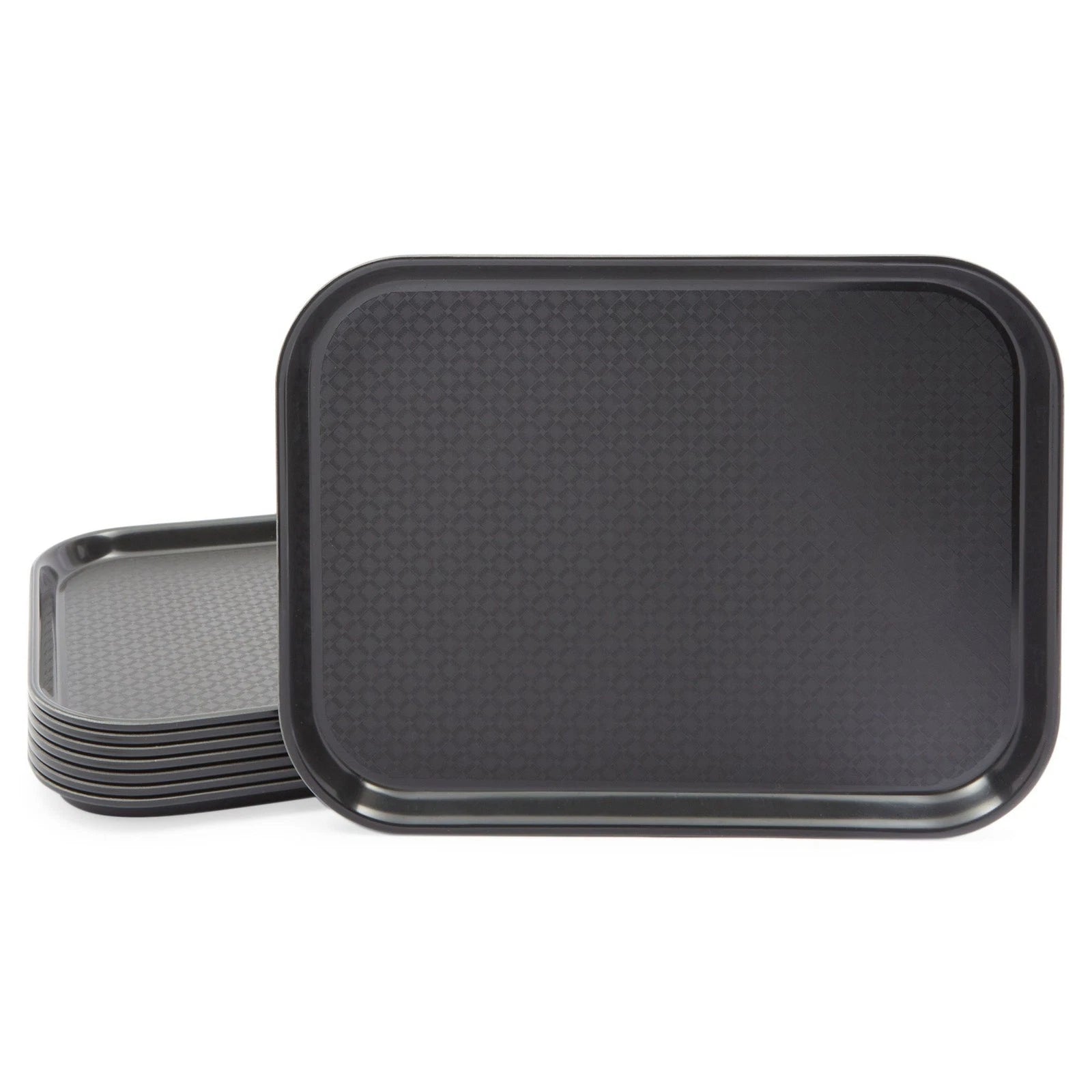 8-Pack Black Plastic Non-Slip Cafeteria Serving Trays