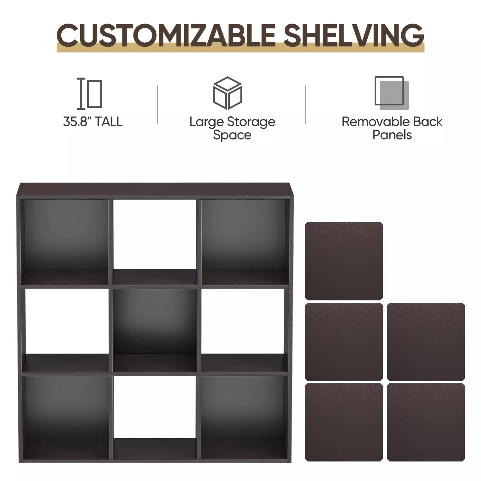 Features 9 spacious open cubes with 5 removable back panels, allowing customizable storage and easy cleaning.