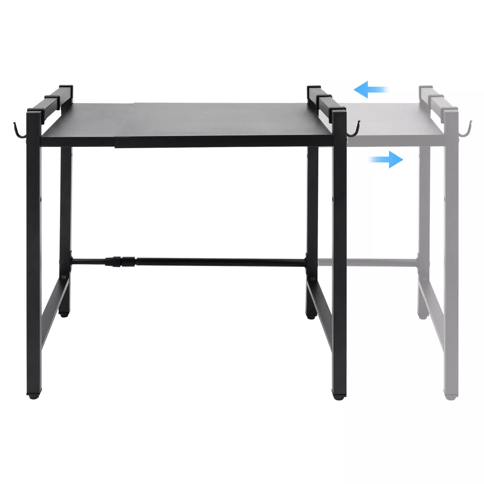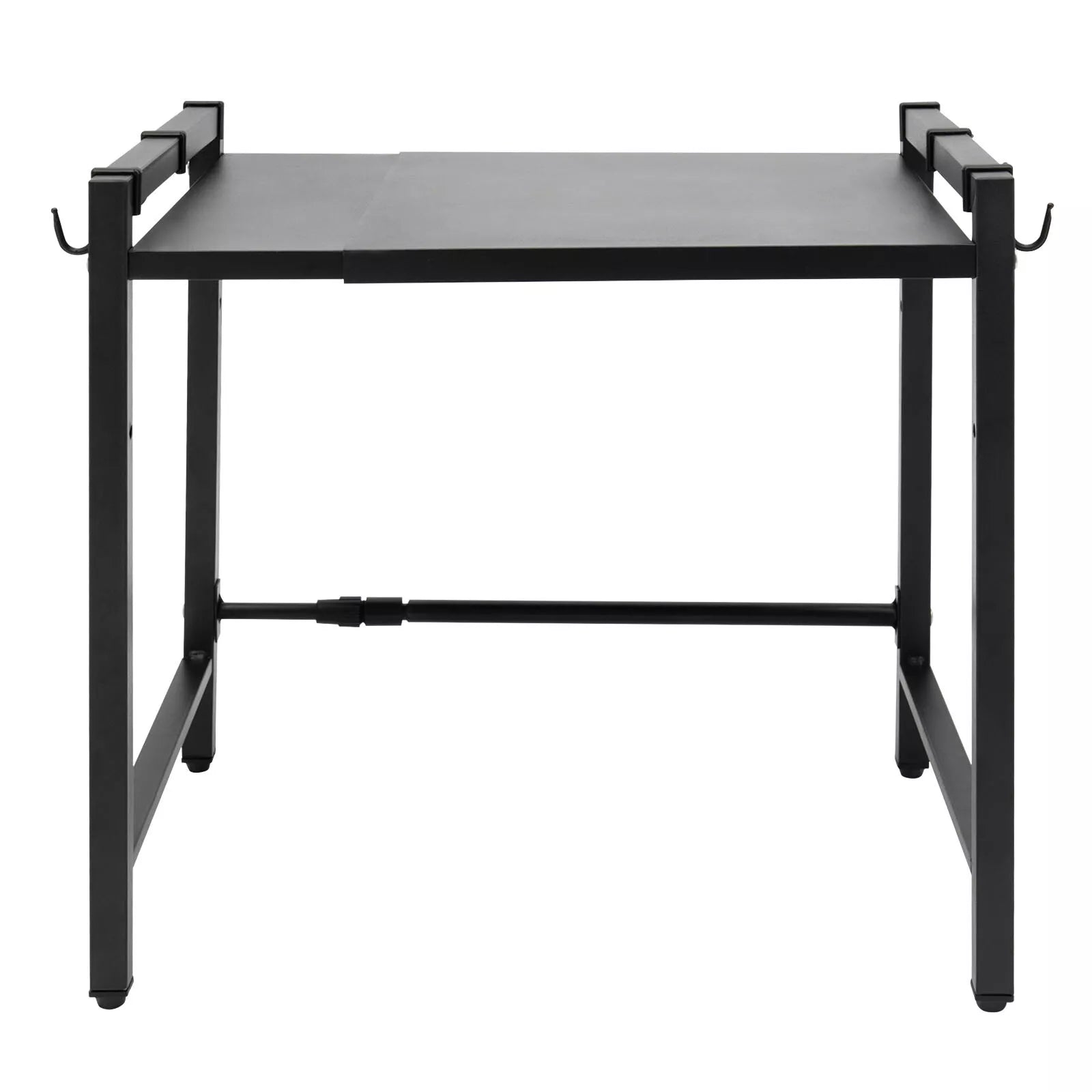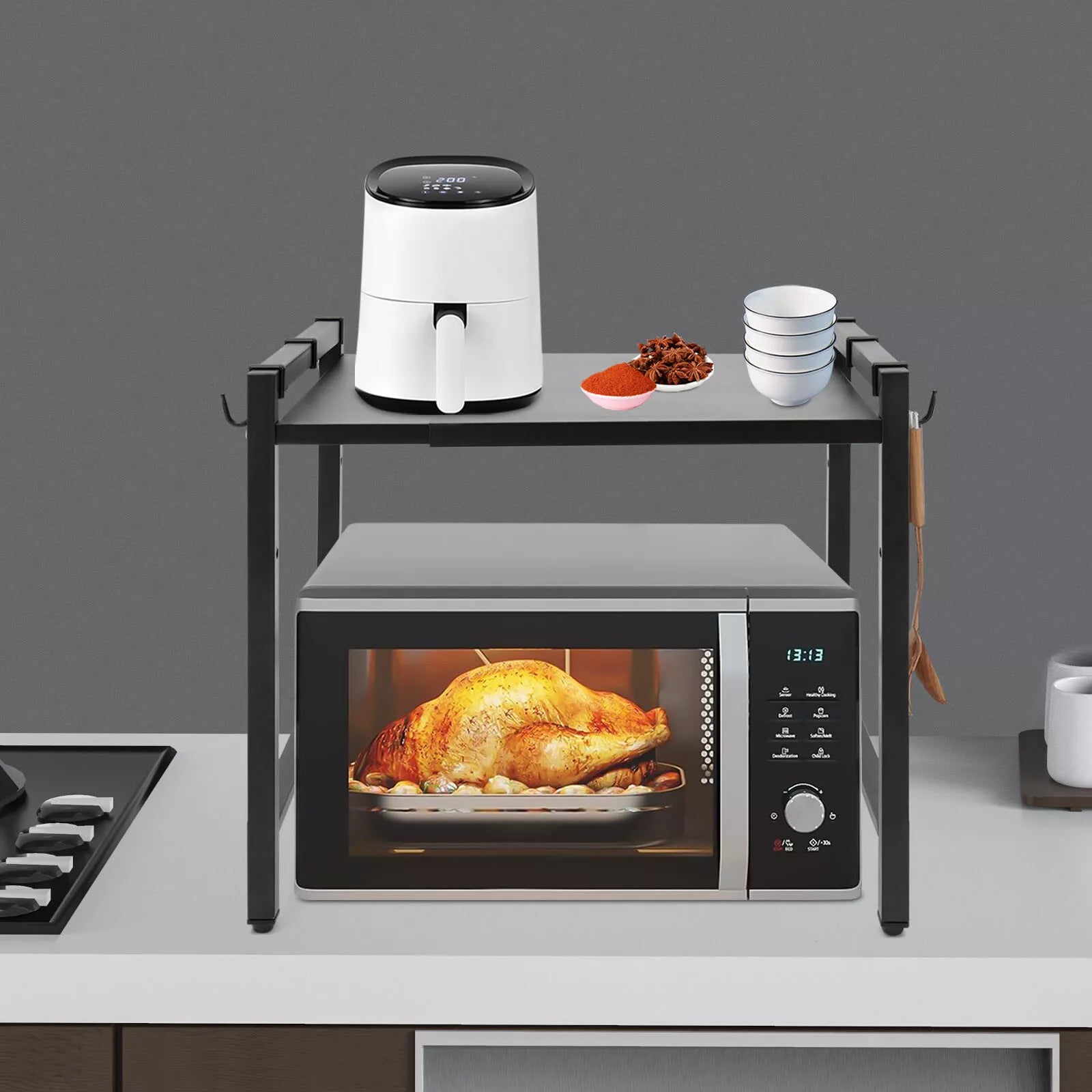 Adjustable Microwave Stand Black Carbon Steel Shelf with Hooks