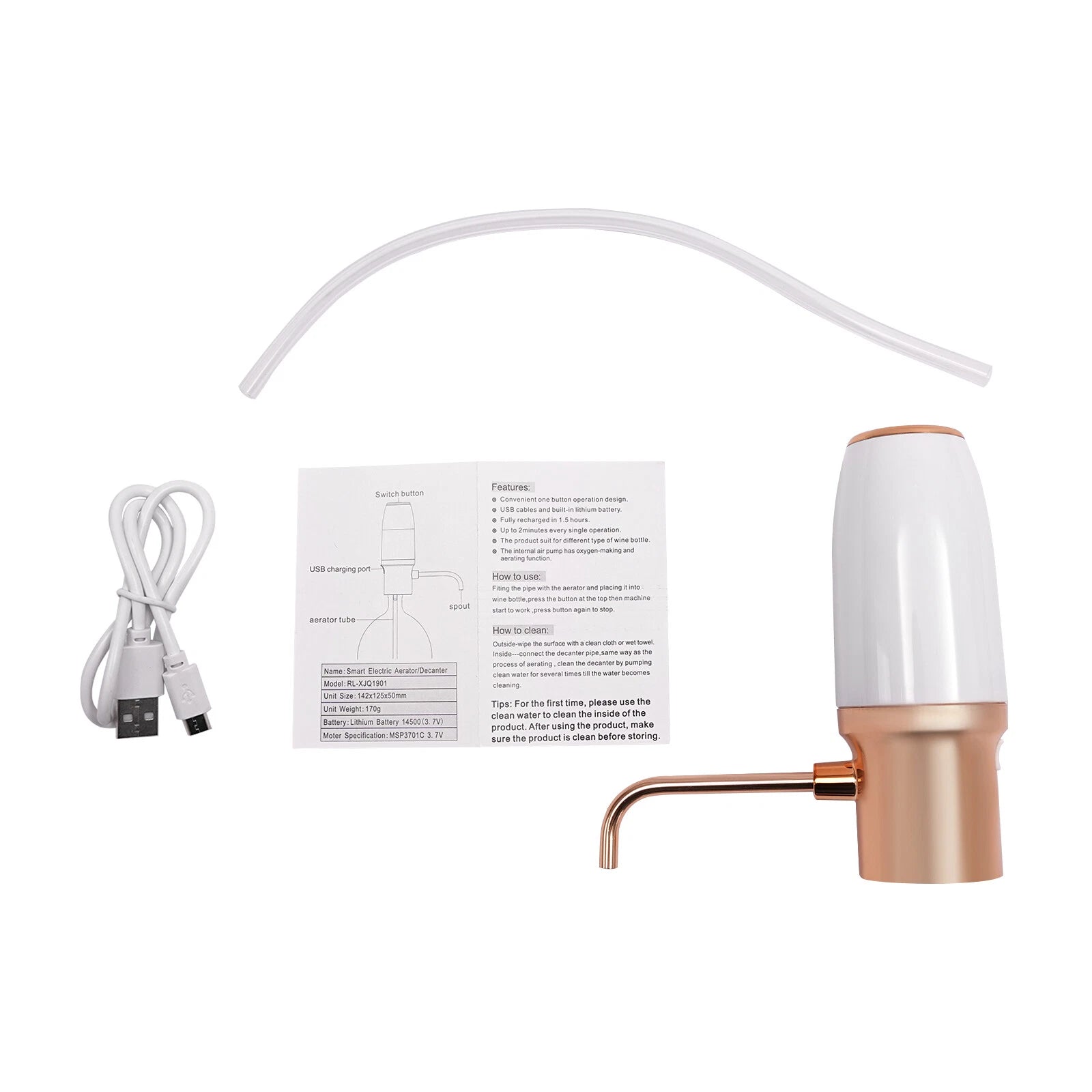 Powered by a built-in 800mAh lithium battery, it fully charges in just 1.5 hours and can decant approximately 50 to 80 bottles of 0.2-gallon red wine on a full charge. USB-powered for convenience. -