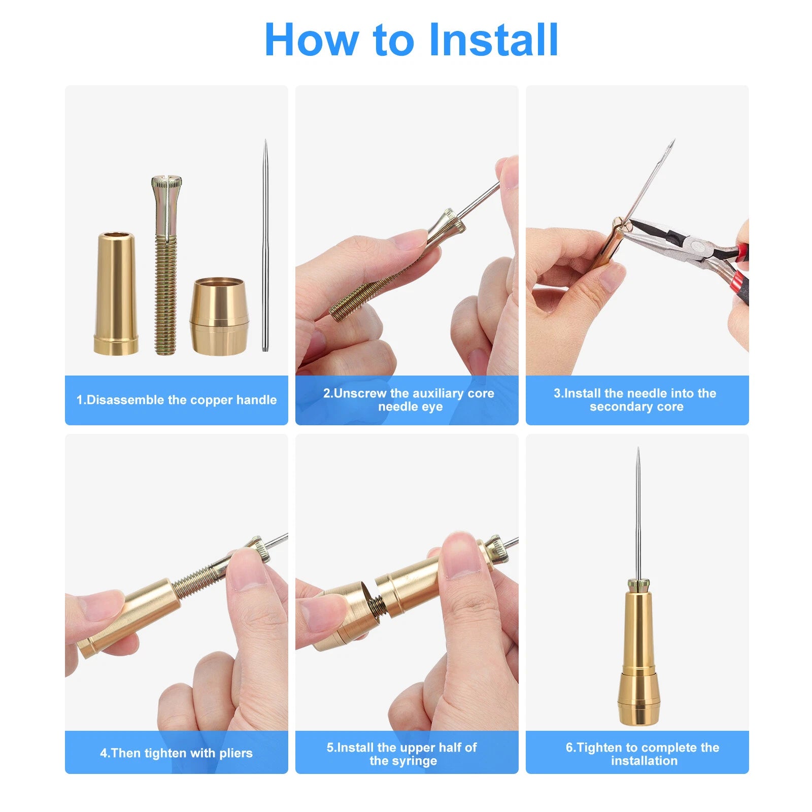 Includes 6 interchangeable sewing needles that fit securely into the copper handle. Simply twist the end to switch needles—ideal for adapting to various sewing tasks with ease.