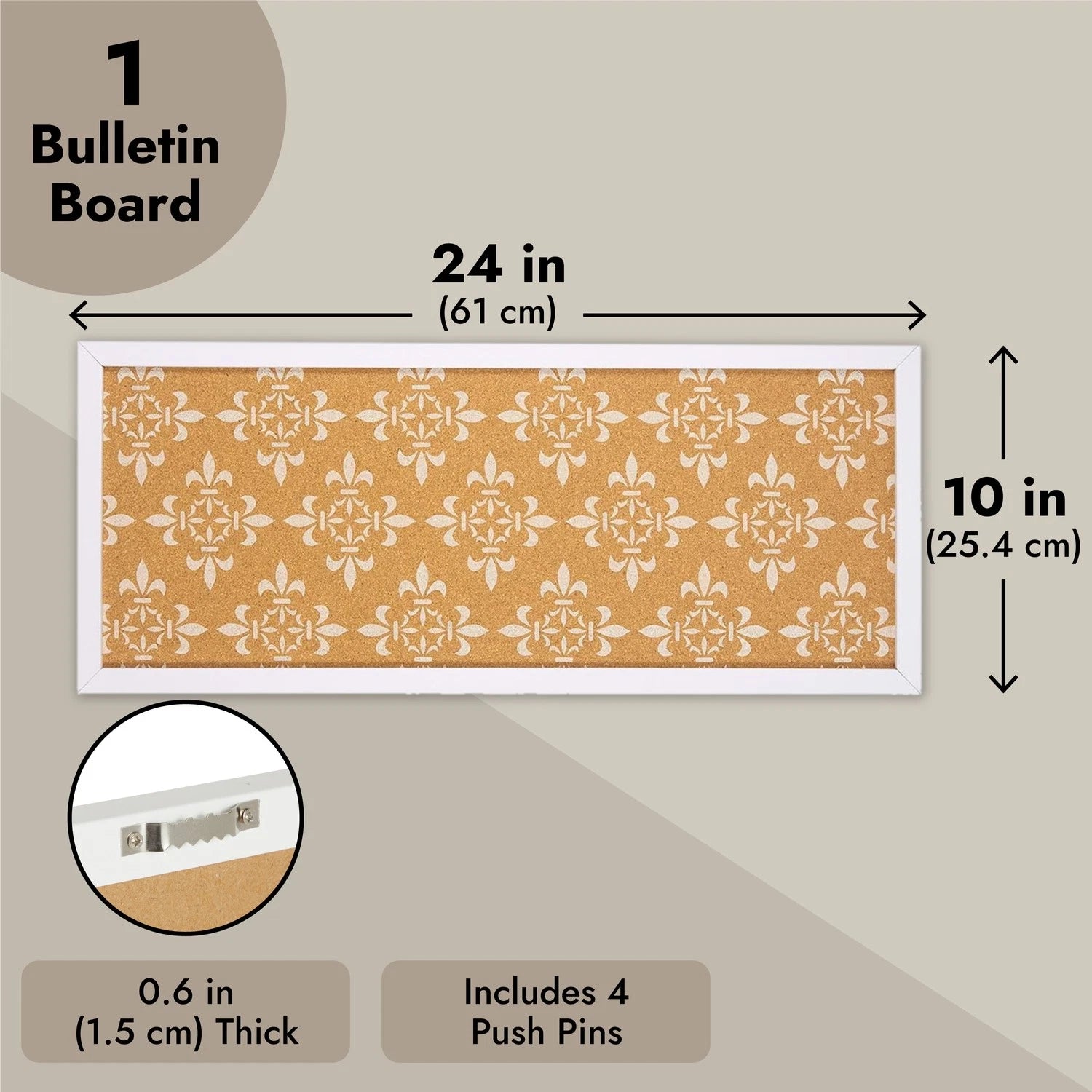 Chic Family Message Center: Use this stylish cork board to organize grocery lists, reminders, and school schedules in your kitchen or entryway. Its decorative print and white frame add charm to any space.