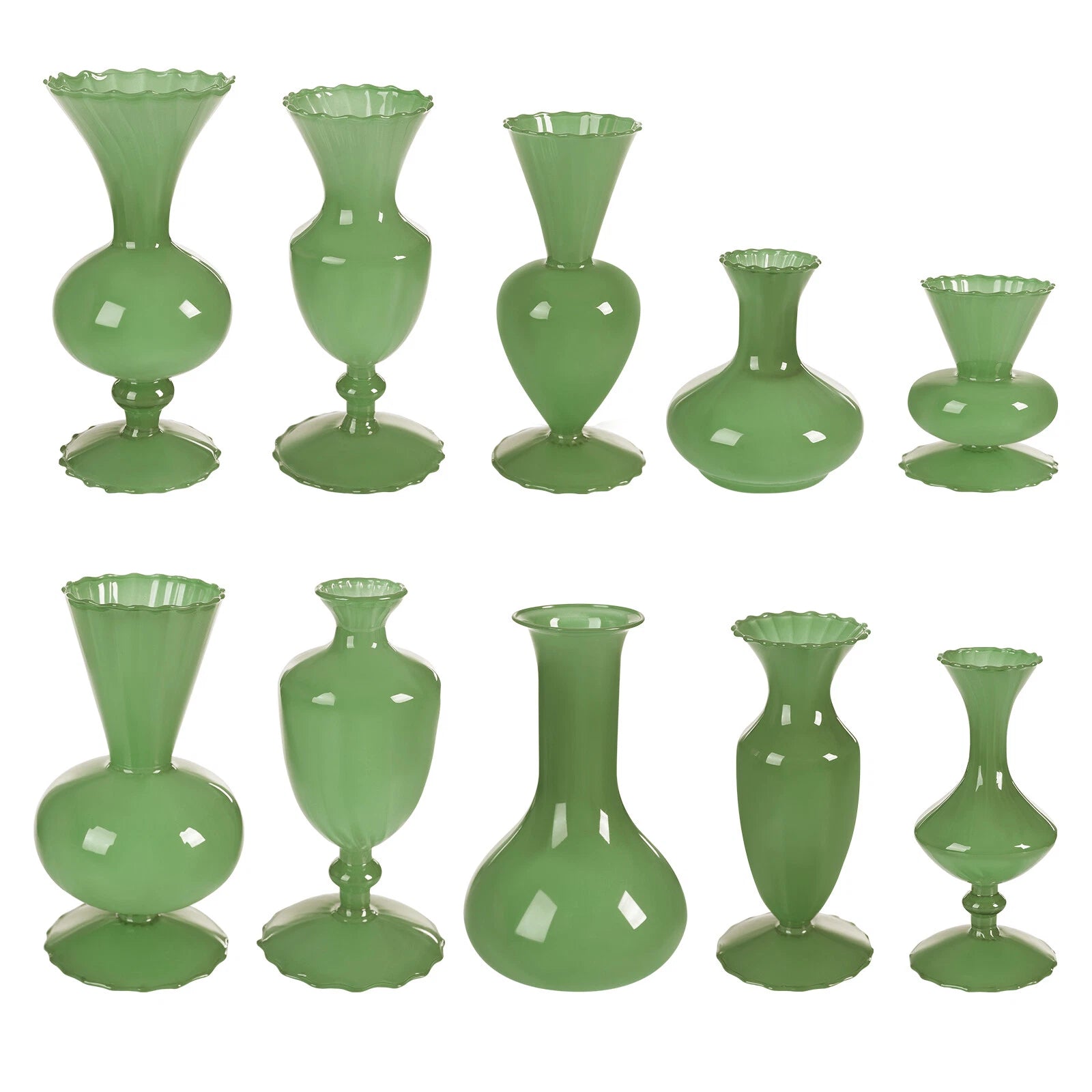 Glass Bud Vases – Small Green Mini Vases Set of 10