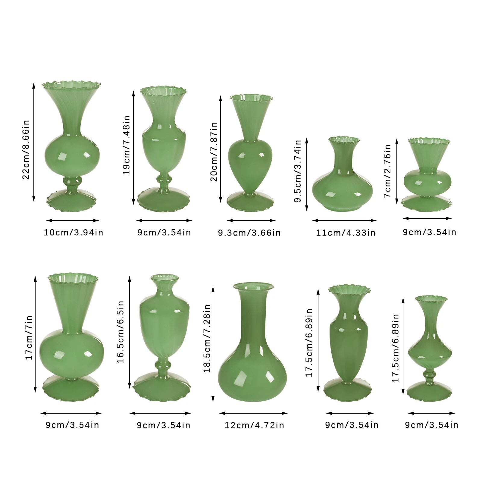 Product Size (D*H): 11×9.5 cm; 9×17 cm; 9×16.5 cm; 9×17.5 cm (2 pcs); 9×7 cm; 12×18.5 cm; 9×19 cm; 9.3×20 cm; 10×22 cm