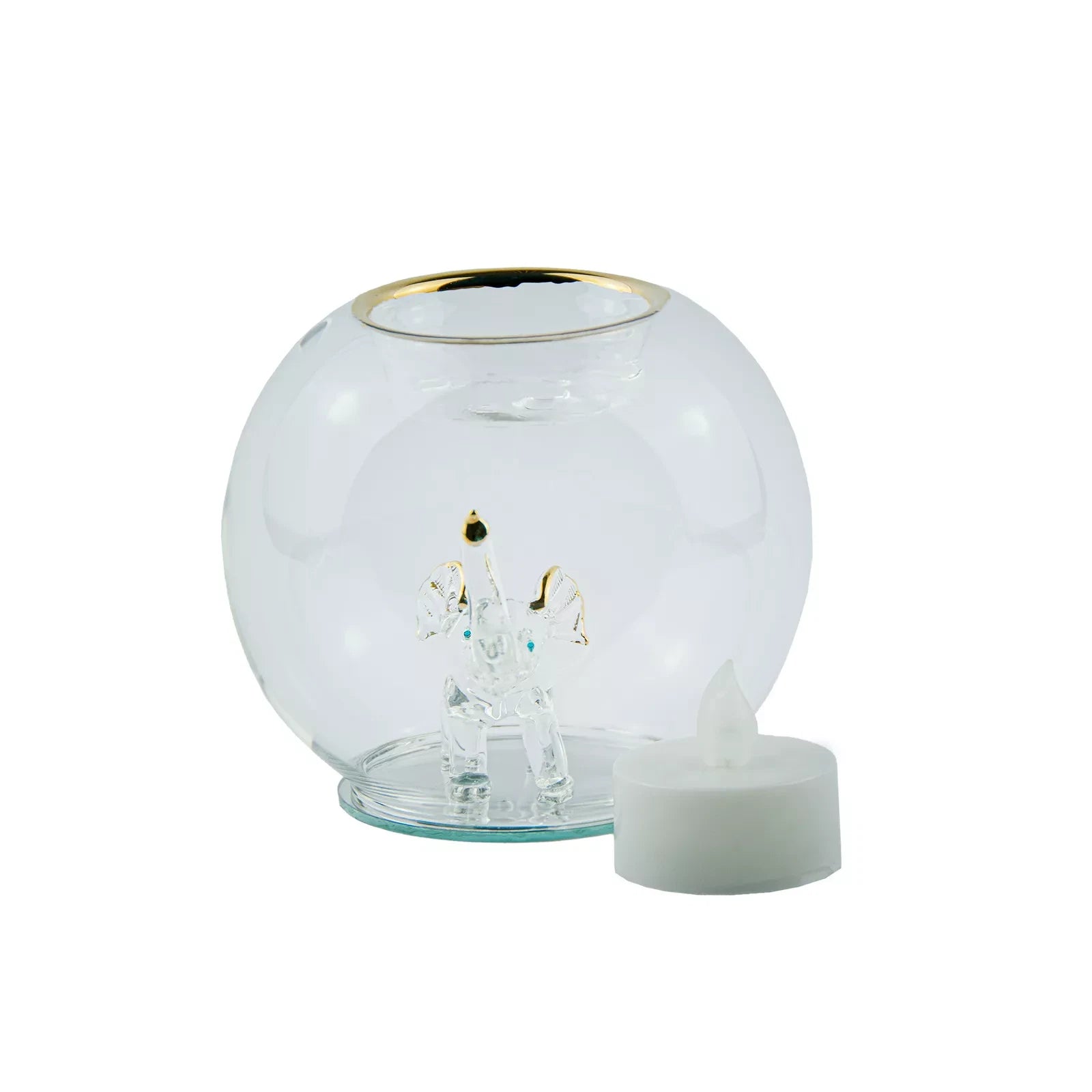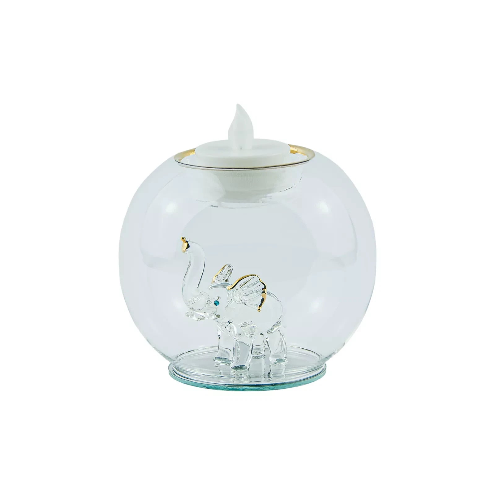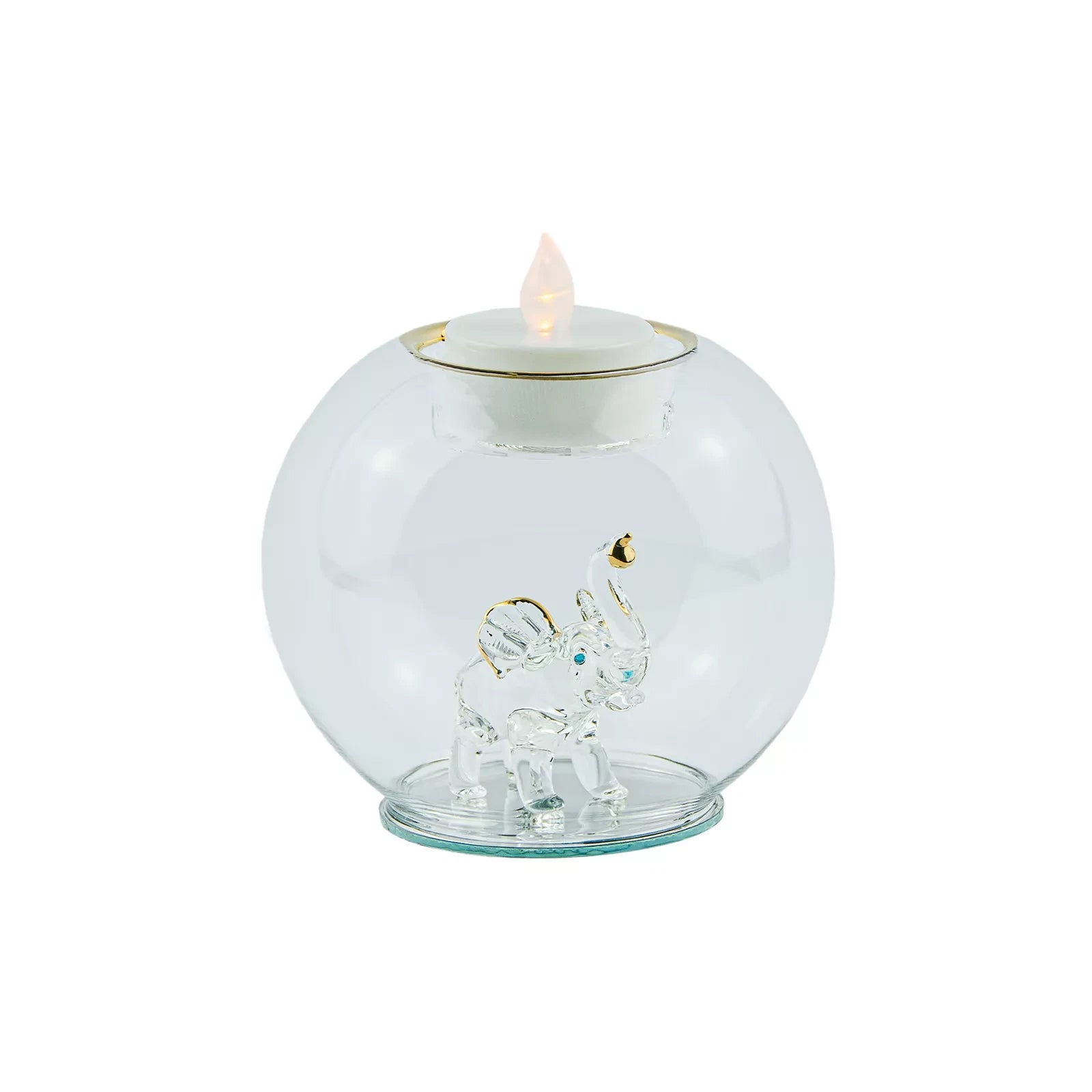 Glass Elephant Tealight Candle Holder with Flameless Candle