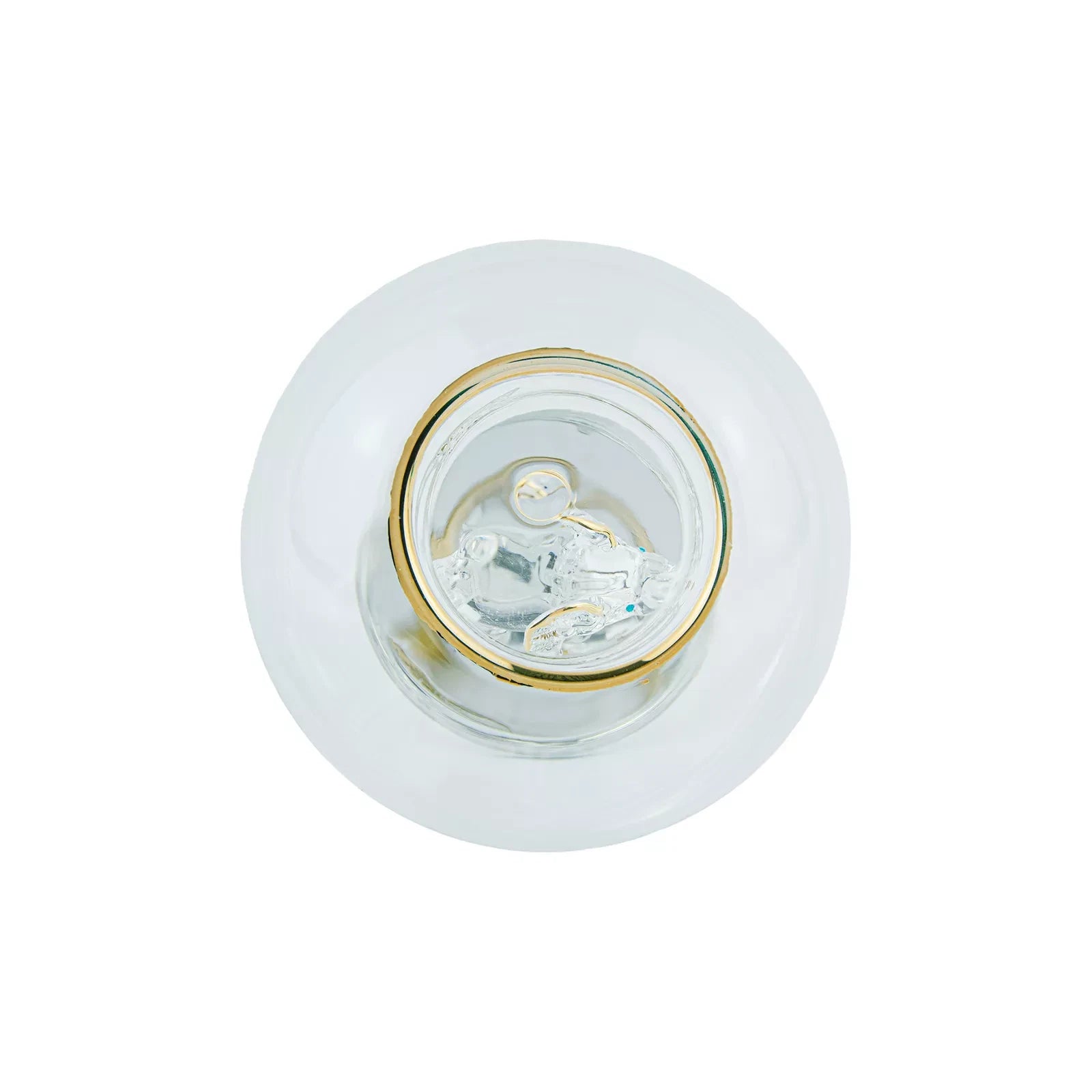 - Bring charm and elegance to any space with this Glass Elephant Tealight Holder. Featuring a hand-blown glass elephant with blue eyes and gold-tone accents, it sits atop a mirrored base under a glass dome.