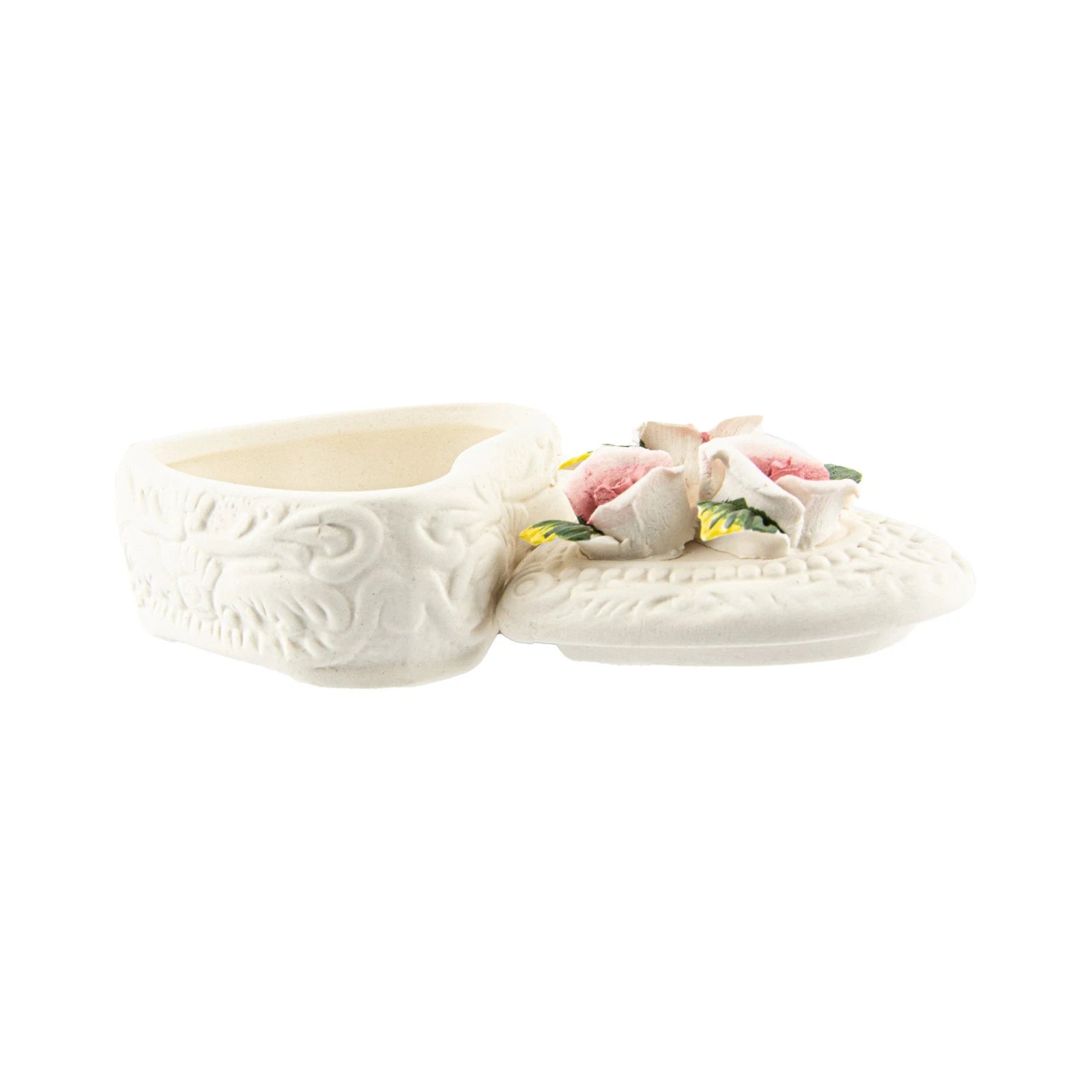 Heart Shaped Ceramic Trinket Box with Rose Lid