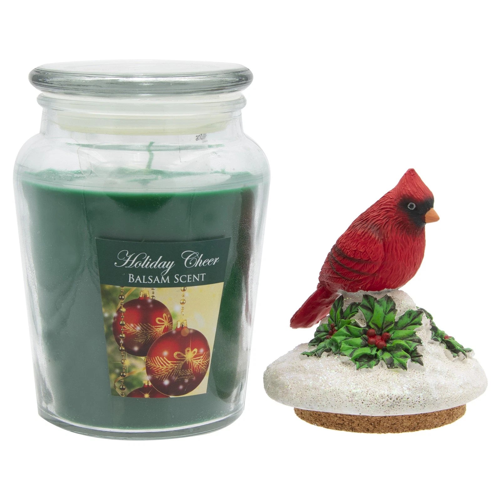 Holiday Cheer Balsam Scented Jar Candle with Cardinal Topper