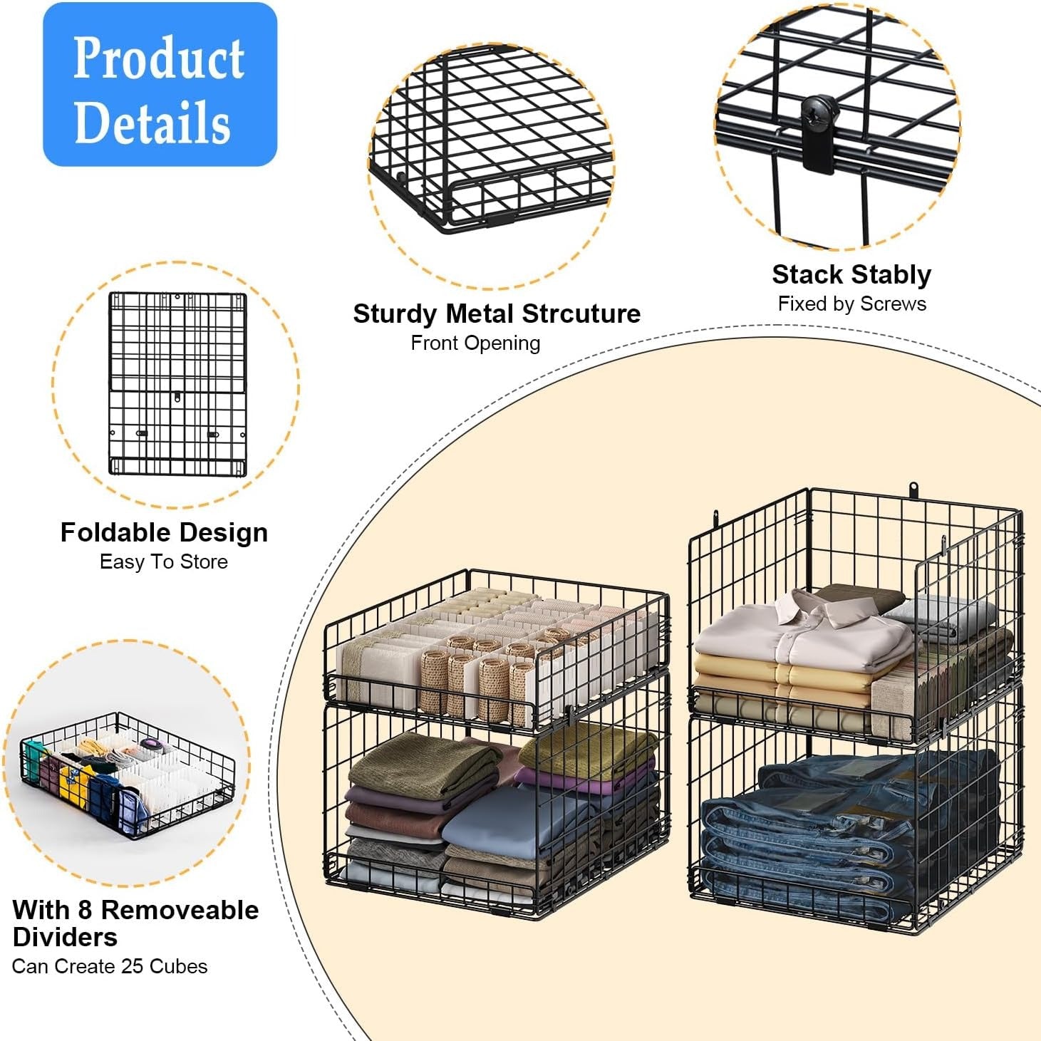 ✔ 4-Pack 4-Tier Stackable Design