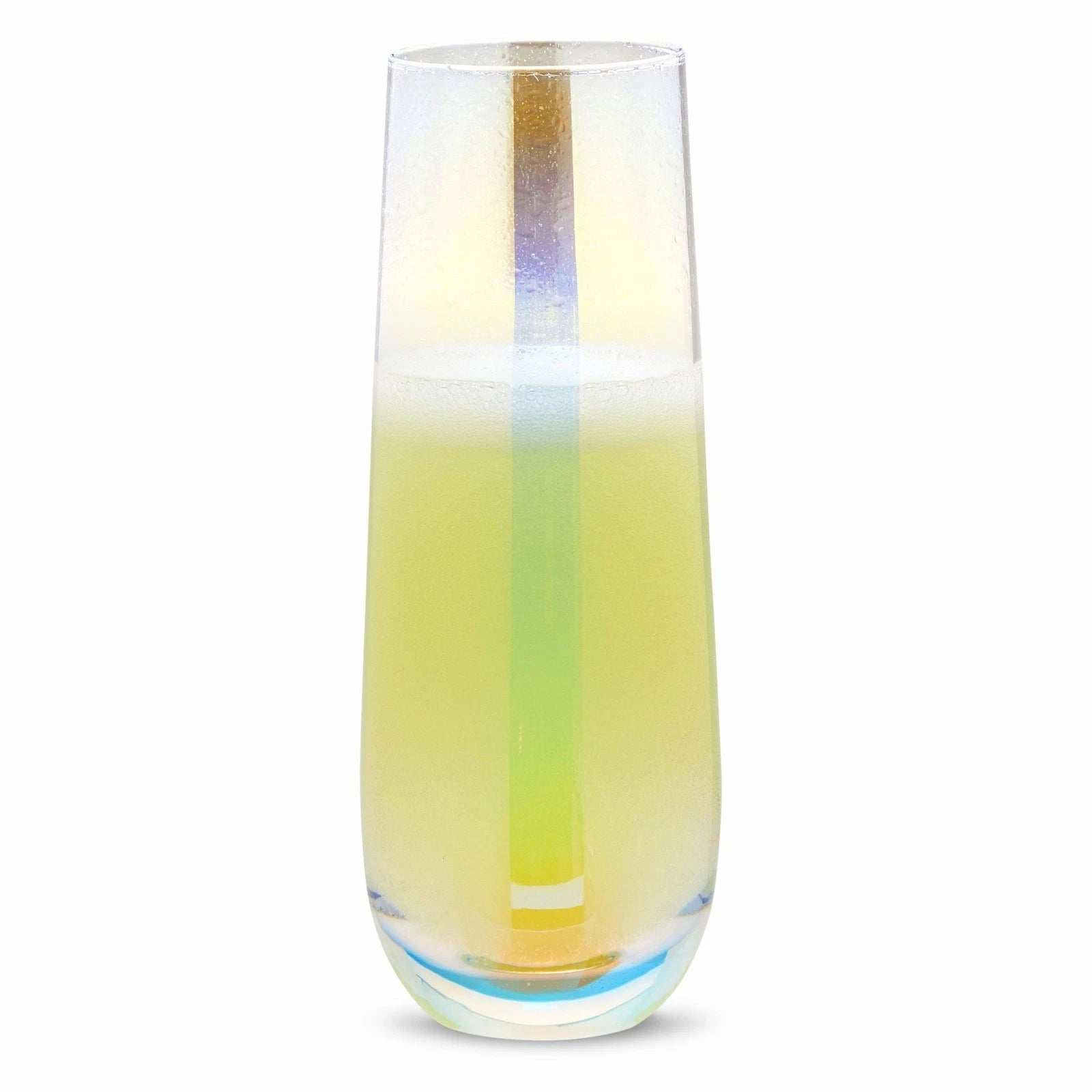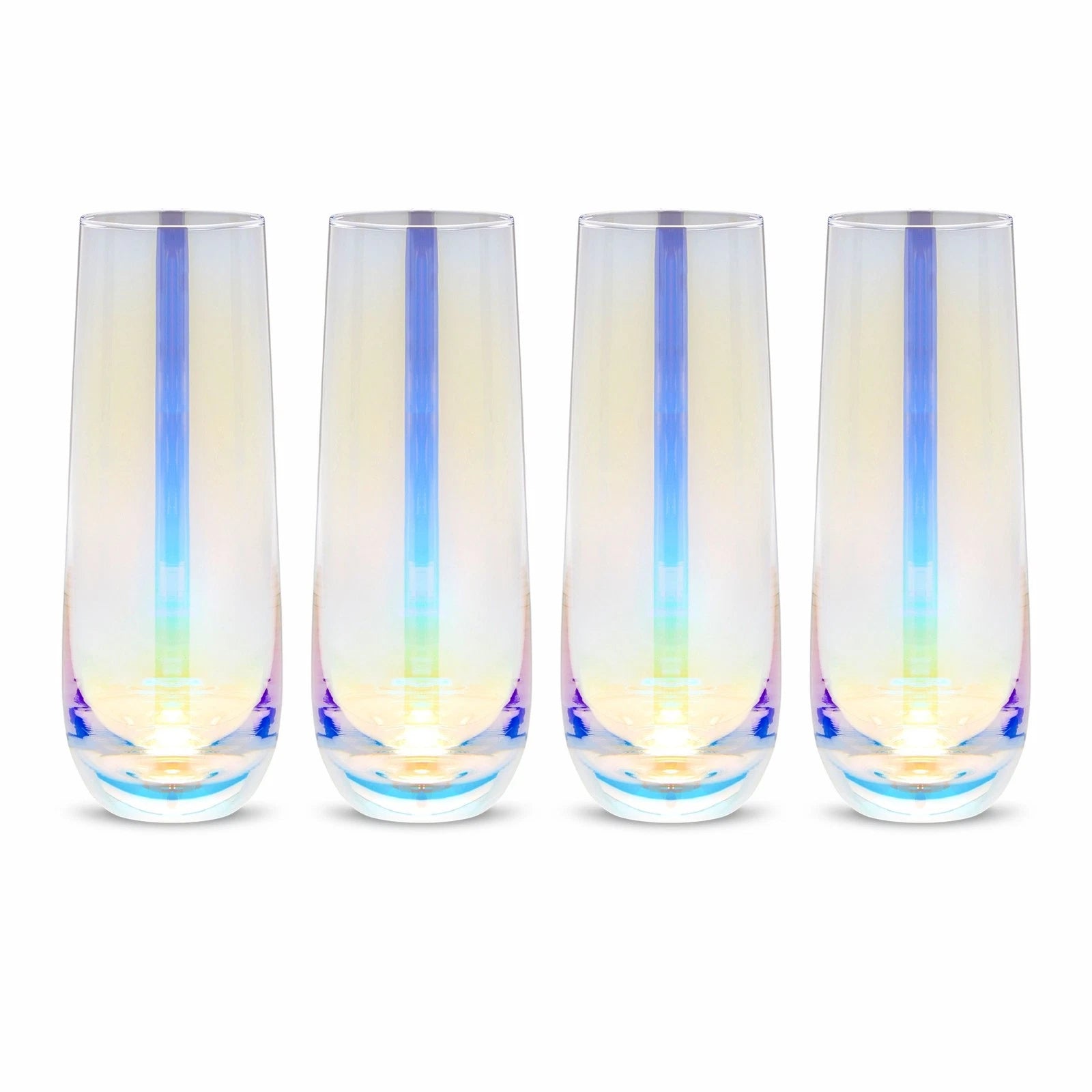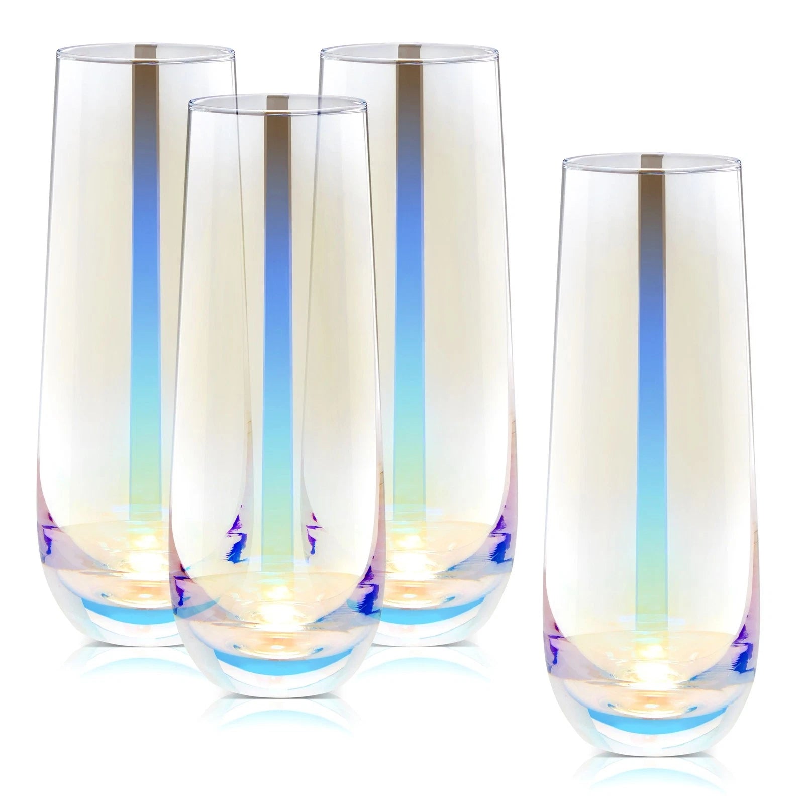 Iridescent Stemless Champagne Flutes, 10 oz (4 Pack)