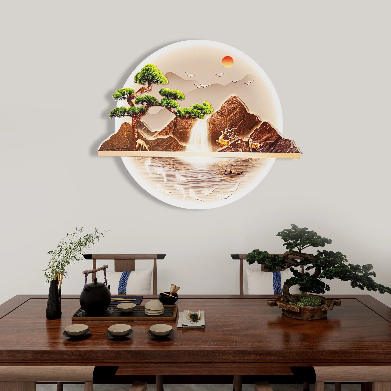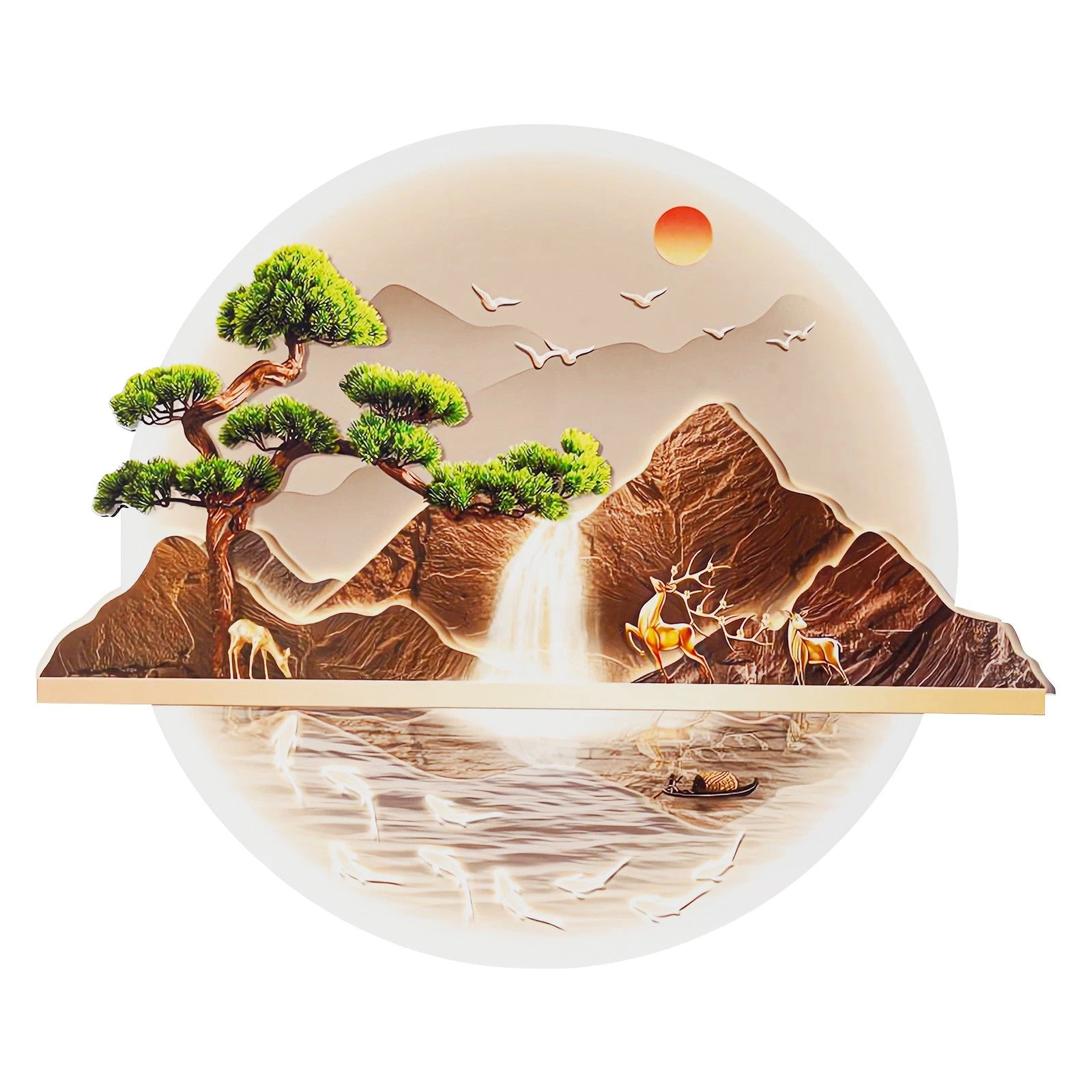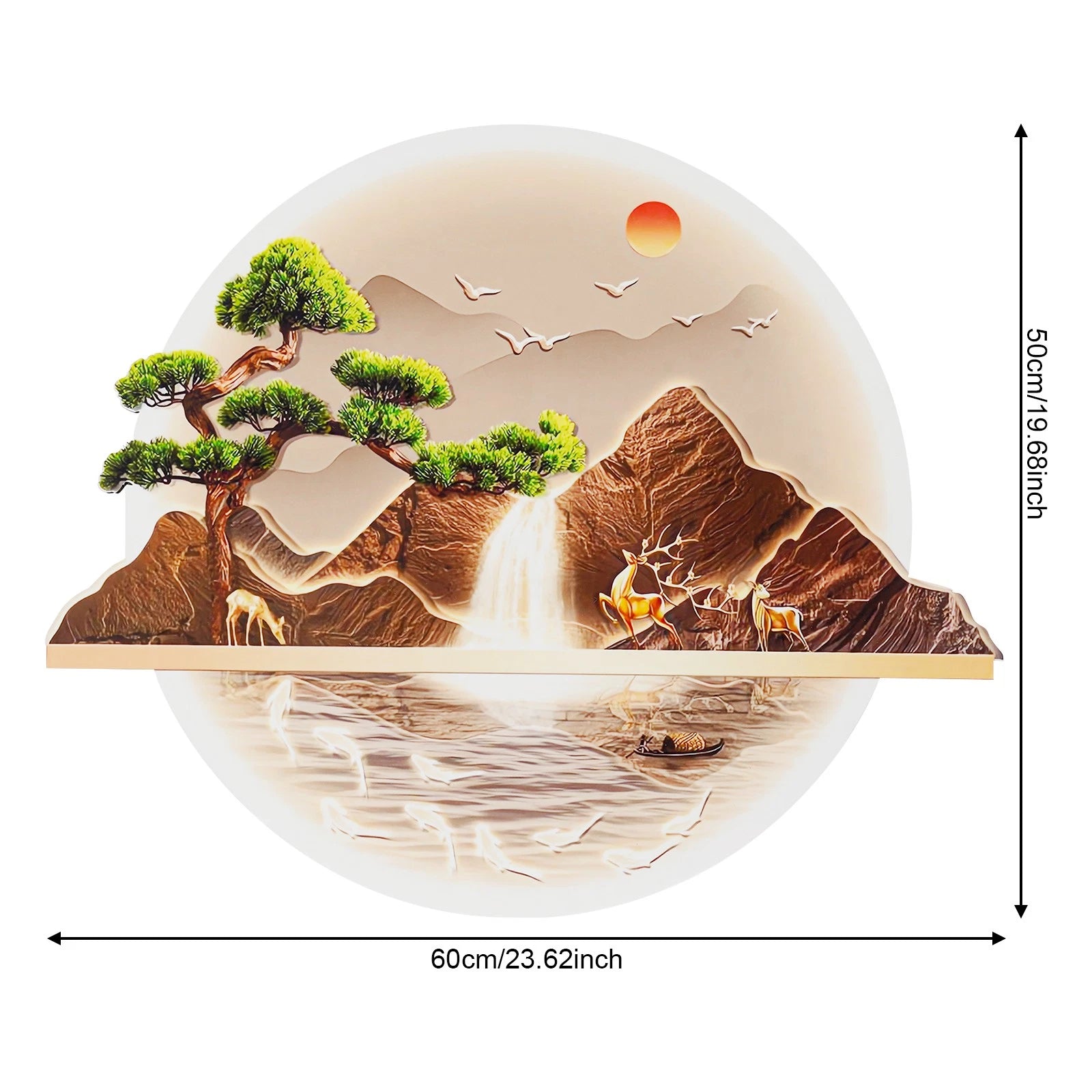 Enhance your home with this elegant LED wall art, combining contemporary design with traditional Chinese landscape imagery. Featuring mountains, water, trees, deer, and birds, this piece emits warm, adjustable LED light, creating a sophisticated ambiance while symbolizing peace, prosperity, and harmony. Perfect for living rooms, bedrooms, hallways, or entranceways.