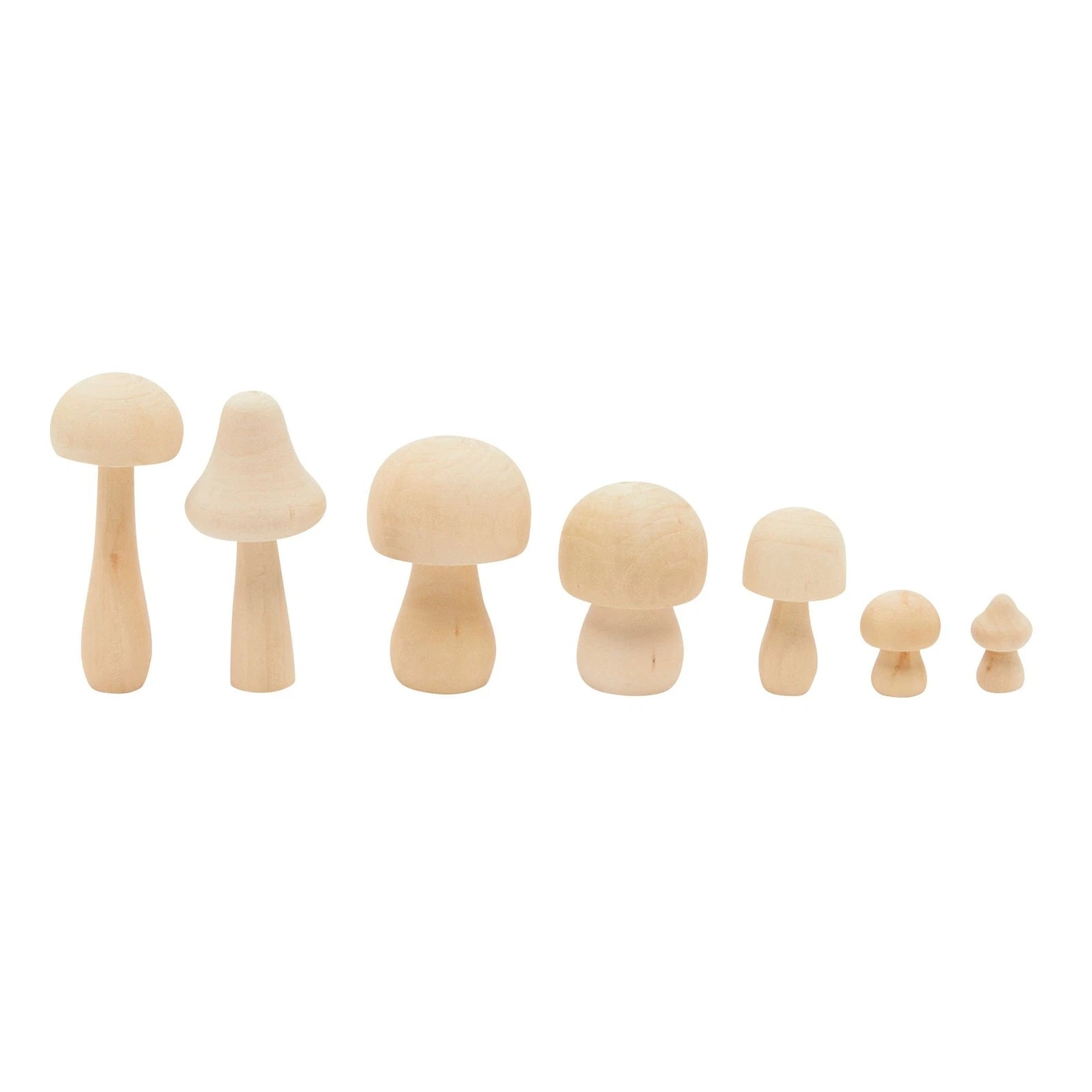 Wooden Mushrooms: Smooth, natural schima wood mushrooms that bring a playful and enchanting touch to any space.