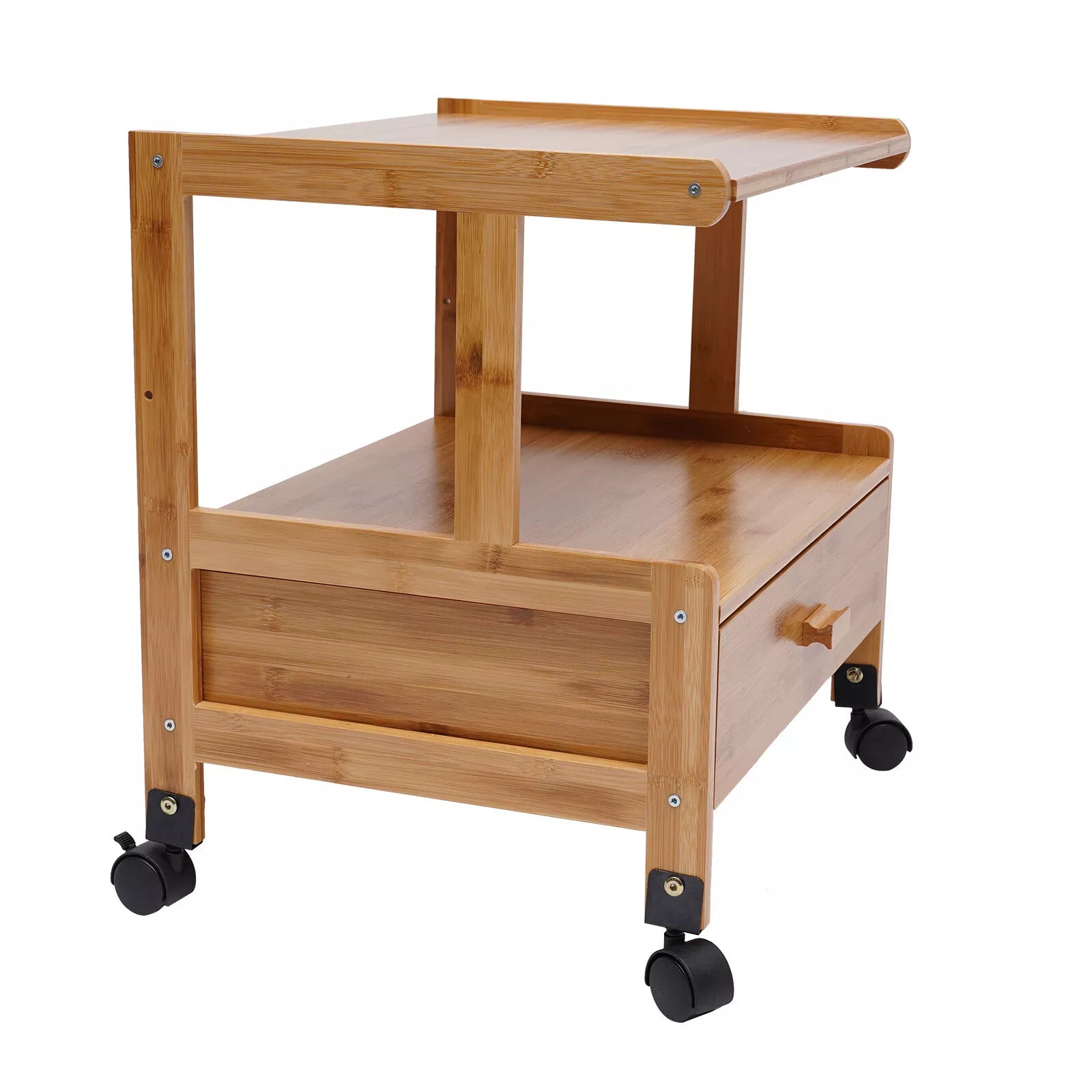 Mobile Printer Stand Rolling Cart – 2/3 Tier Bamboo Storage