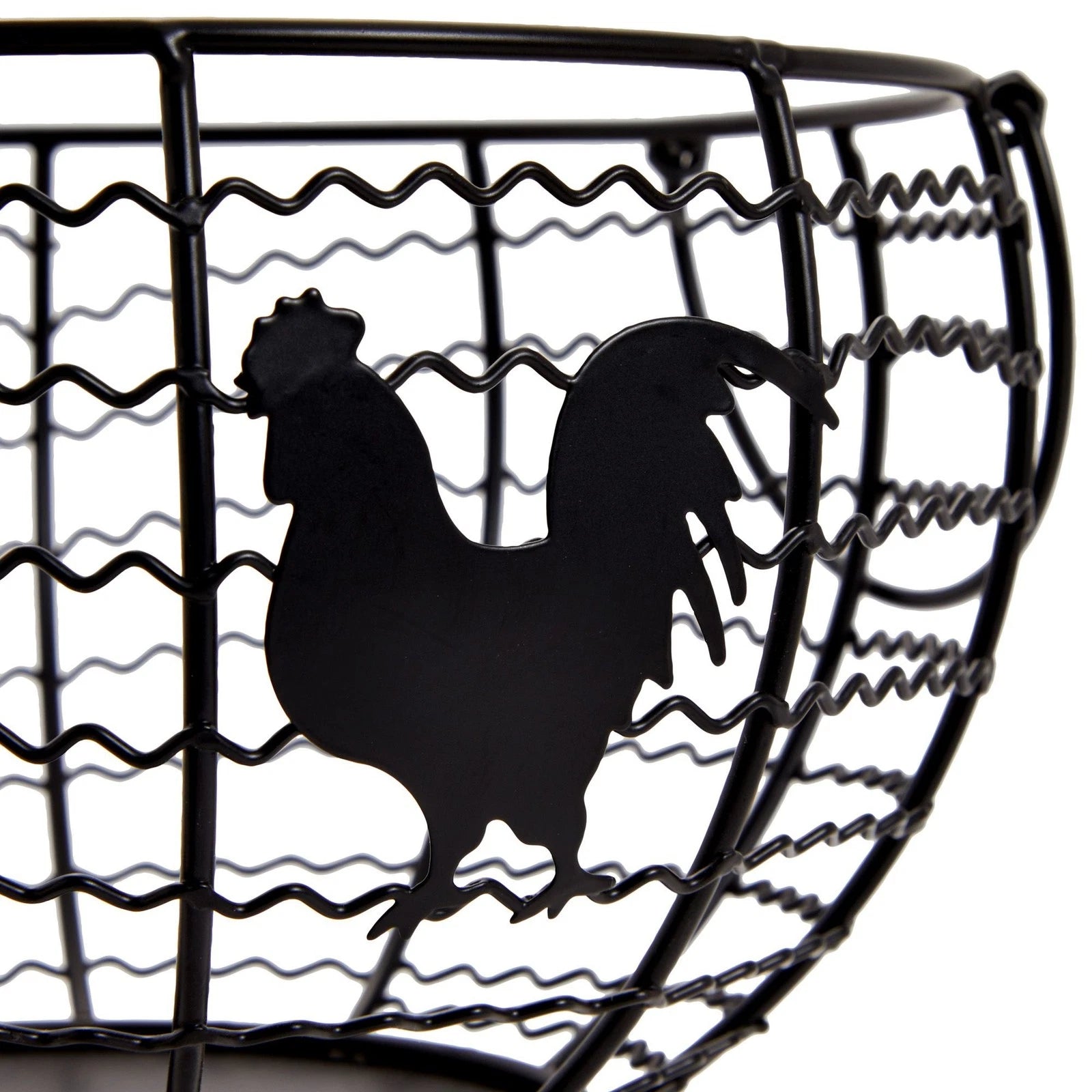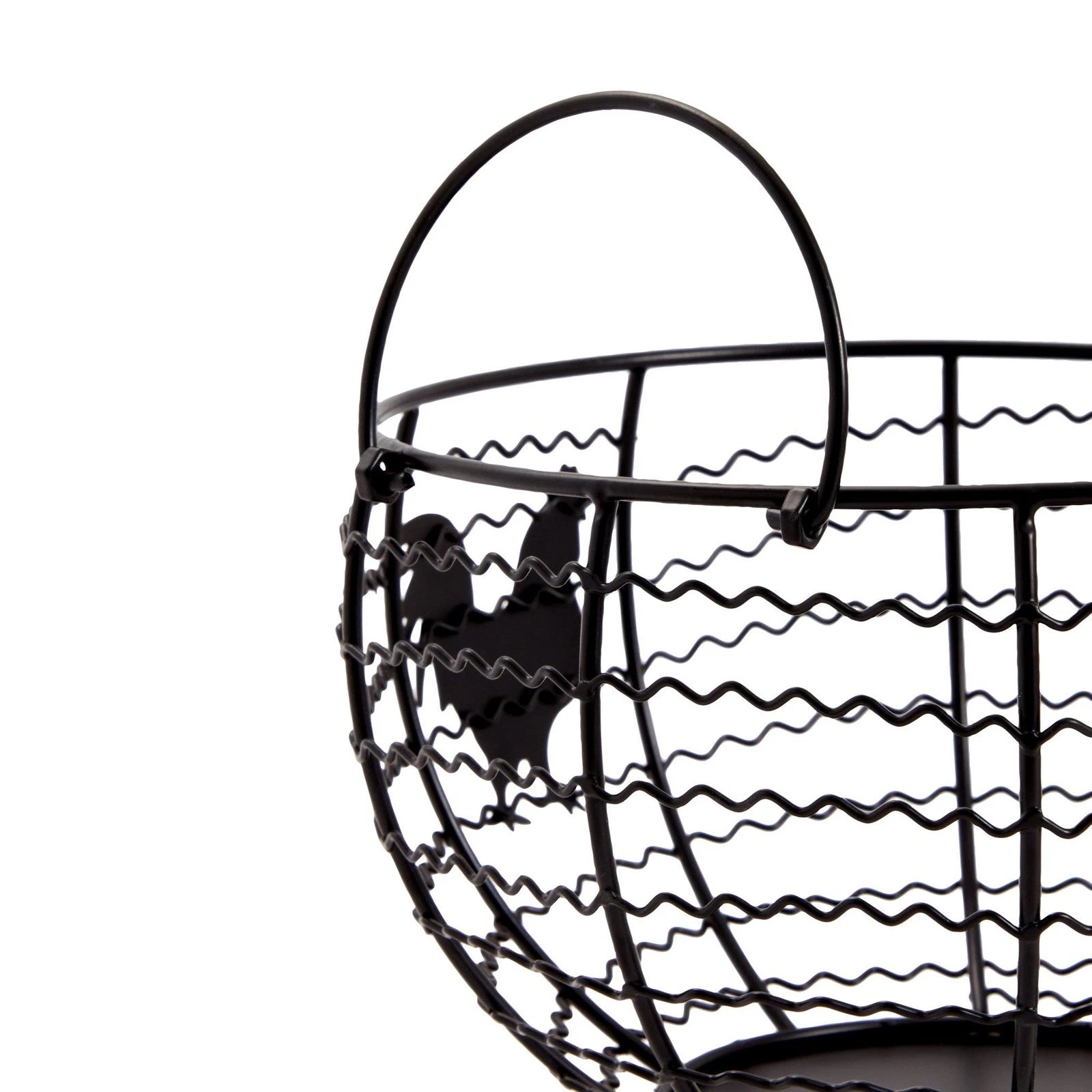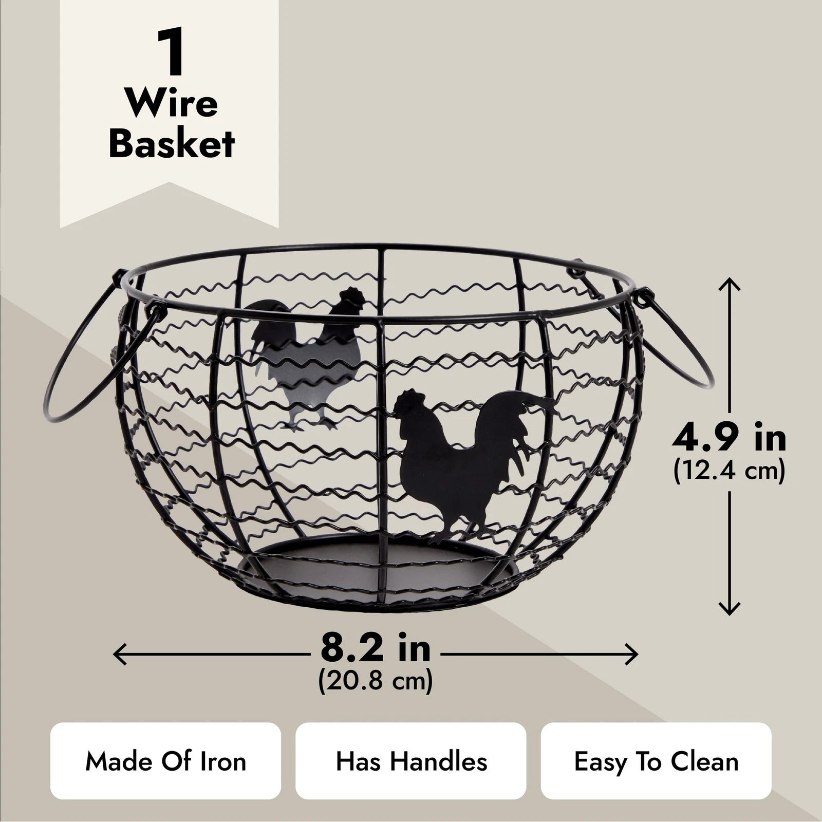 Add rustic charm to your kitchen with this black wire egg basket. Perfectly sized for storing eggs, fruits, vegetables, or snacks, this round basket enhances your kitchen decor while keeping essentials organized and within reach.