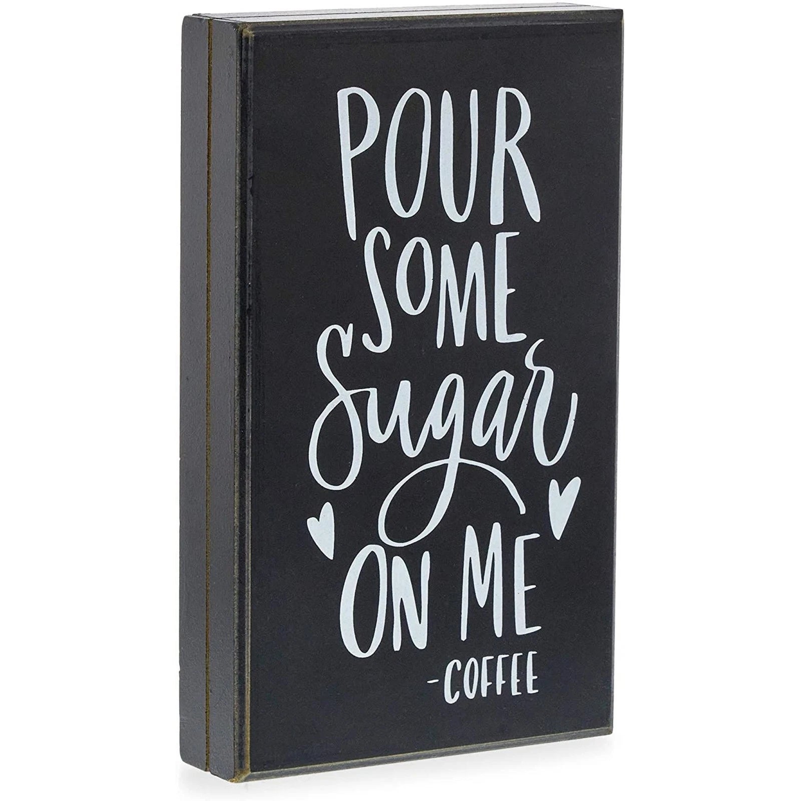 Charming Wall Decor: Add personality to your kitchen or coffee bar with this rustic black wooden sign that reads "Pour Some Sugar on Me – Coffee".