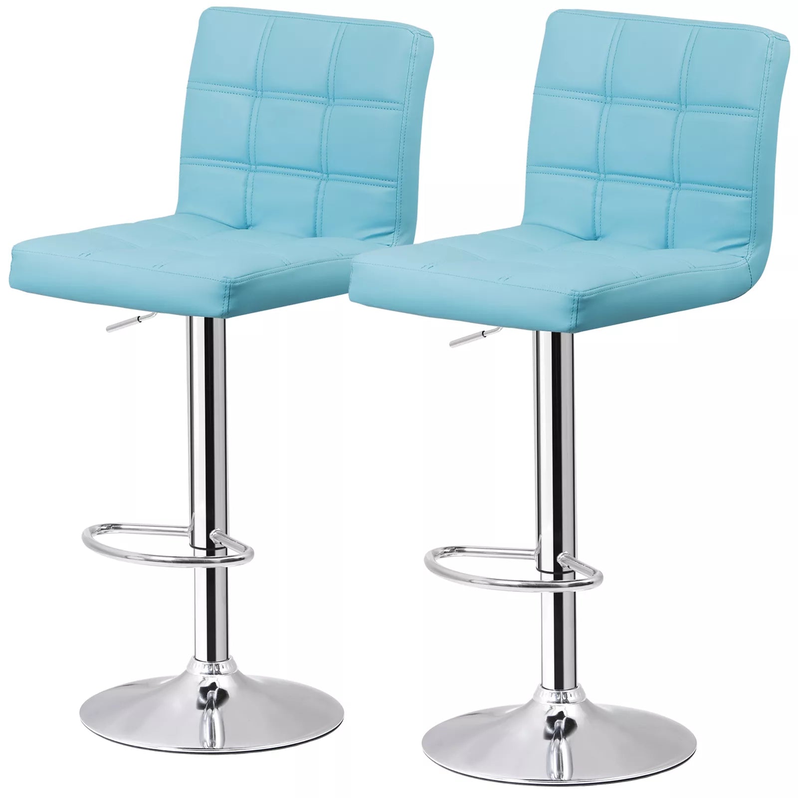 Add a modern touch to your kitchen or bar area with this set of 2 blue bar stools. The sleek synthetic PVC leather upholstery and glossy metallic legs create a refined and contemporary look suitable for a variety of spaces, including kitchens, bars, cafes, and dining areas.