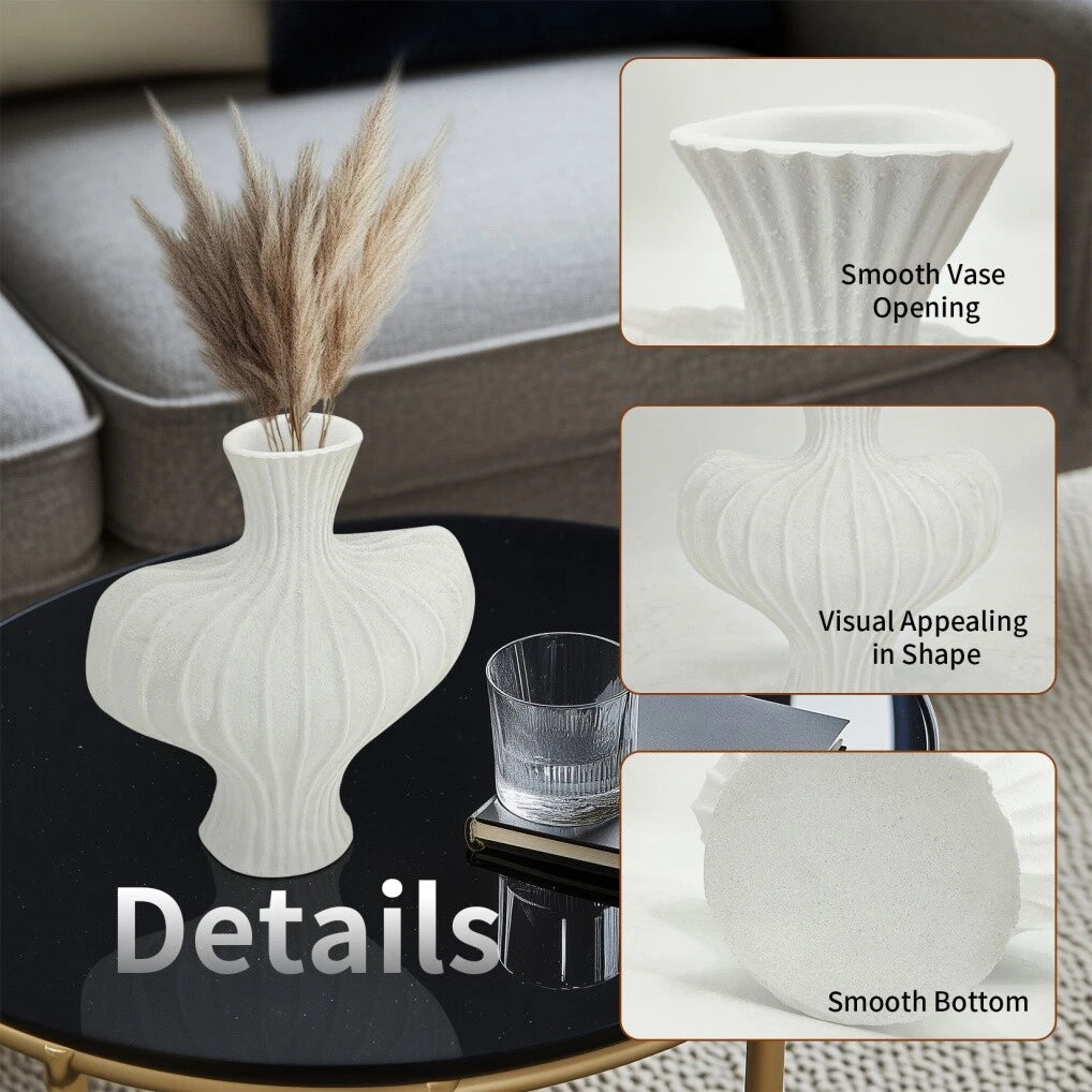 Ideal for displaying dried flowers, pampas grass, or fresh floral arrangements. It can also stand alone as a striking art piece. Made from durable resin with a matte White finish, it's lightweight, anti-deformation, fade-resistant, and easy to clean.