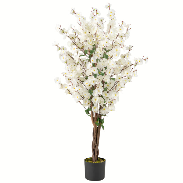 White Faux Plum Blossom Tree with Solid Wood Trunk